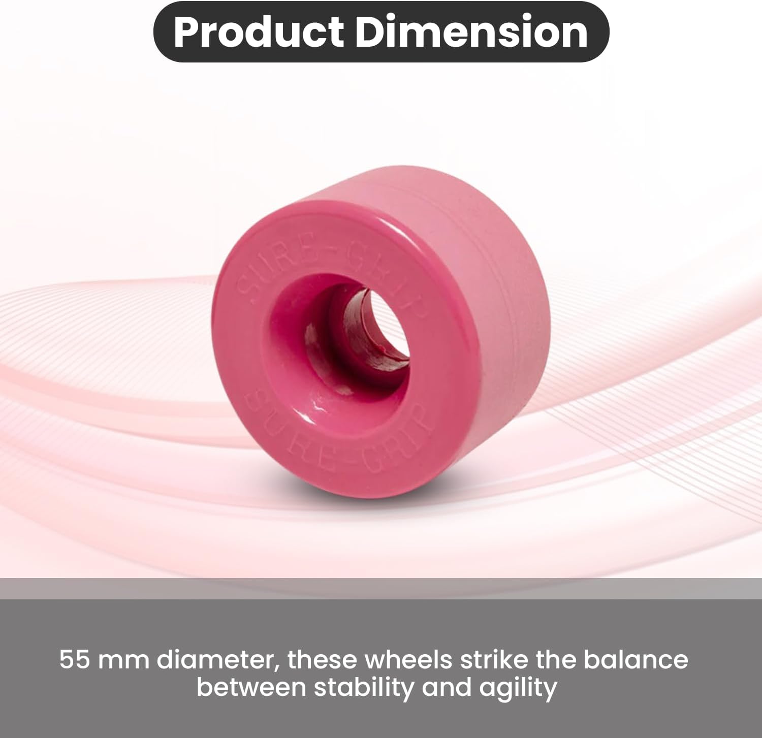 Limited Edition Colors!!!! Original Sure-Grip Velvet Vanathane roller skate wheel in 55mm. Available Pink, Sky Blue, and Lime Green. Very hard indoor wheel formula made for smooth surfaces that allow for some slight sliding. Sold as a set of 8 wheels