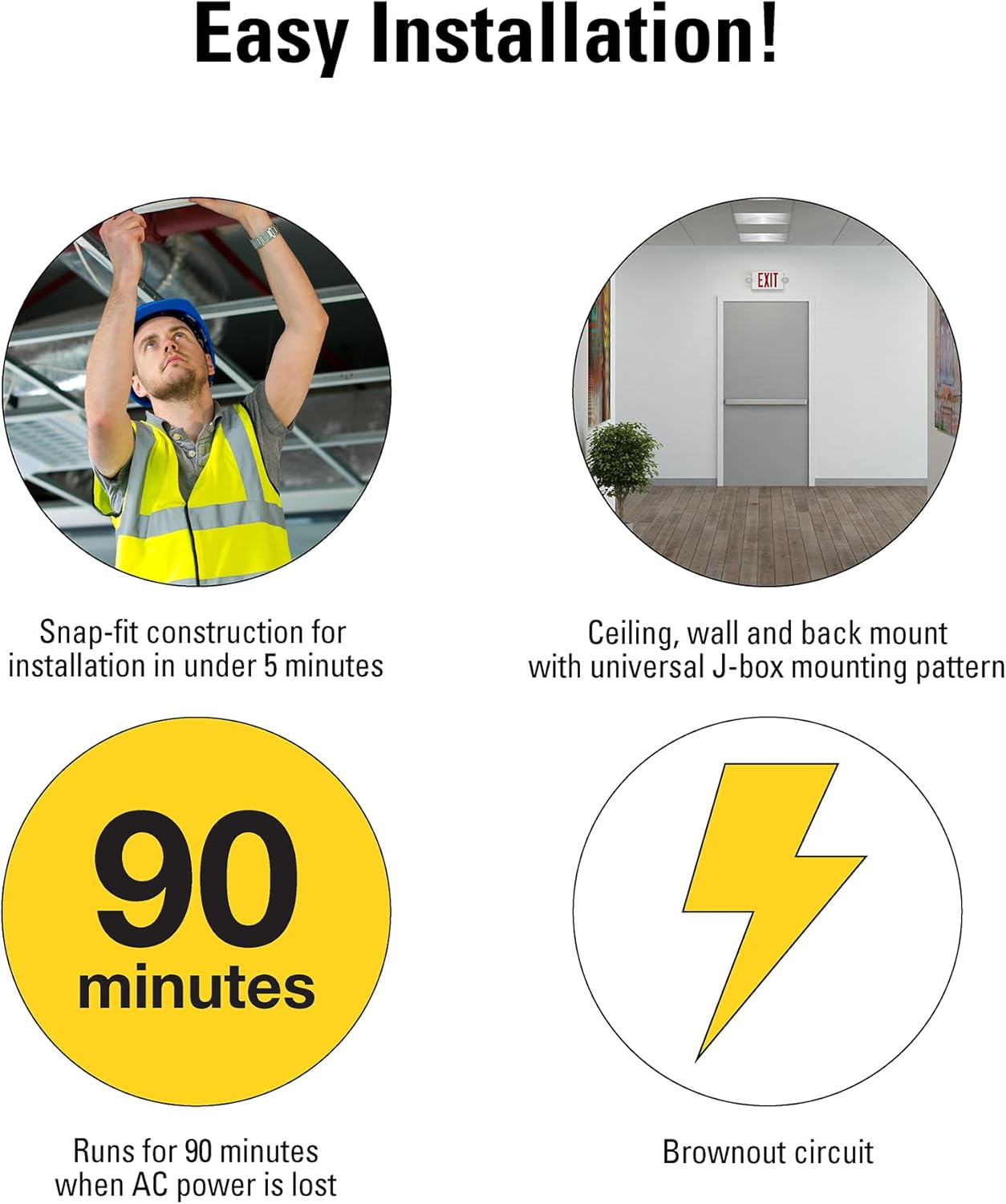 The Sure-Lites All-pro commercial exit lighting series are reliable, energy efficient exit signs that help you meet code requirements and enhance safety in your commercial building. The new APX6RG exit sign’s long-lasting LEDs are field selectable for red or green letters so that you do not need to worry about buying the wrong color exit sign for the job site. The APX6RG is an AC only exit sign that makes it ideals for commercial buildings with emergency power backup such as generators or emergency power inverters. The APX6RG is designed for easy installation with universal J-box mounting and is universal surface ceiling, wall and end mountable with configurable single or double faces, snap-in/snap-out directional chevrons making it an ideal choice for electrical contractors. The high impact, UV resistant thermoplastic housings resists discoloration due to age or UV exposure for maximum durability. The APX6RG is UL 924, NEC, NFPA101, NFPA70 and CEC Title 20 compliant.