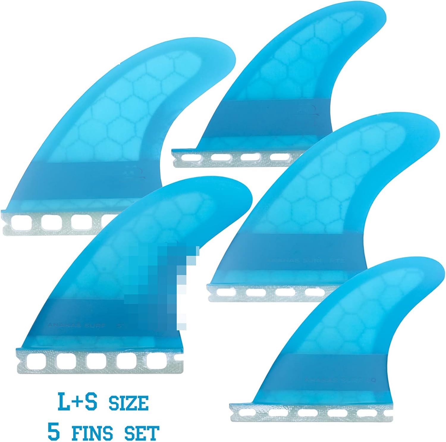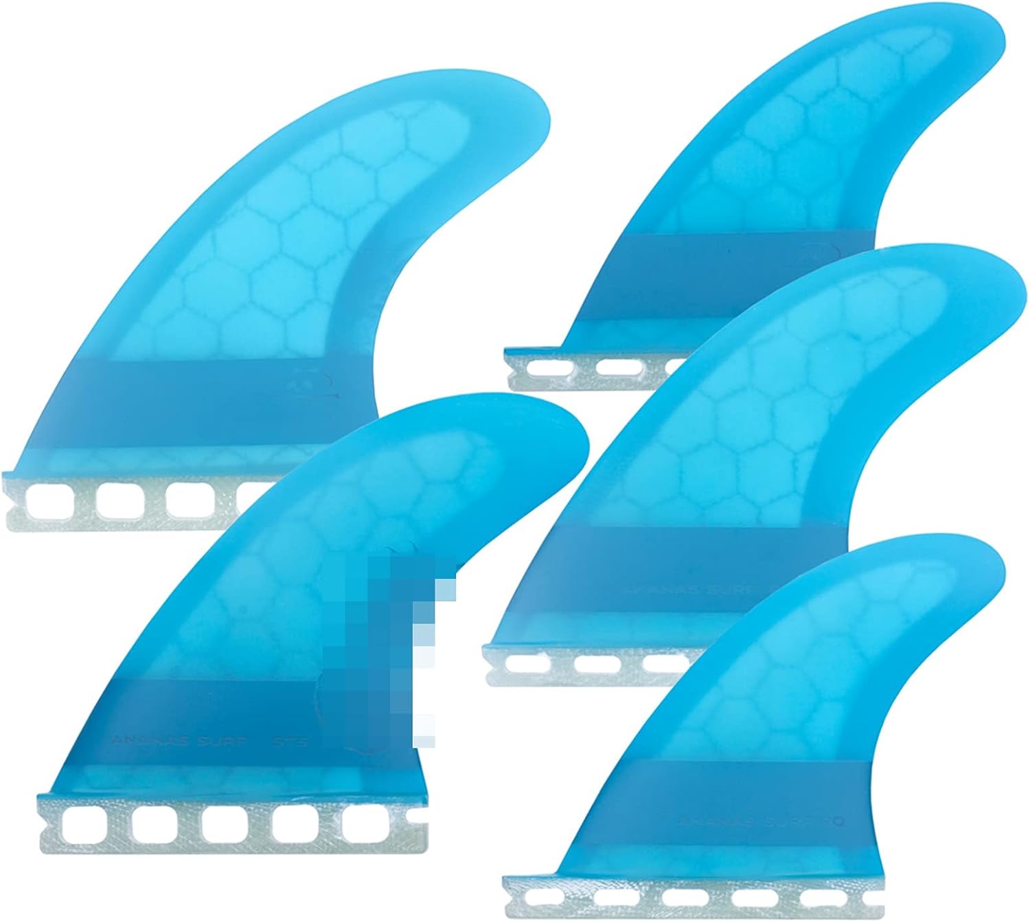 Specification: ·Industry standard Future 3/4" finbox compatible ·Base: 4.37″ / 110mm ·Depth: 4.63″ / 117mm ·Area: 16.06″ / 10360mm ·Sweep: 36.6° ·Foil: Side fins flat foiled ·Board Types: Kitesurfboards, performance shortboards and hybrid models ·Extended honeycomb with lightweight hexagonal core gives these fins the feel of glass-ons. Engineered with a medium flex pattern, more flexible than fiberglass fins. RQ (RX) S size · Industry standard Future 1/2" finbox compatible · Base: 3.81″ / 96.5mm · Depth: 3.96″ /100.6mm · Sweep: 37° · Foil: Side fins flat foiled · Board Types: Kitesurfboards, fish, performance shortboards and hybrid models · Extended honeycomb with lightweight hexagonal core gives these fins the feel of glass-ons. Tips: -Engineered with a medium flex pattern, more flexible than fiberglass fins. -Suitable for fish boards, High Performance longboard and hybrid models