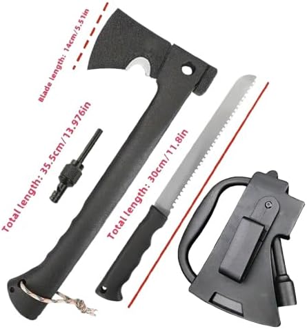Ultimate Outdoor Survival Axe with Fire Starter – Multi-Use Camping Tool for Hiking & Emergency CuttingA compact yet powerful outdoor axe designed for campers, hikers, and anyone needing a reliable emergency tool. Built with a durable cutting edge and paired with a fire starter, this survival axe gives you everything you need for campsite preparation, basic wood cutting, and emergency readiness.Specifications:Product Type: Outdoor survival axeTotal Length: 35 cm / 13.97 inBlade Length: 14 cm / 5.5 inBlade Material: High-strength steelFunction: Wood cutting, camp preparation, emergency fire makingIncluded: Fire starter rodDesign: Compact, balanced, and easy to carry