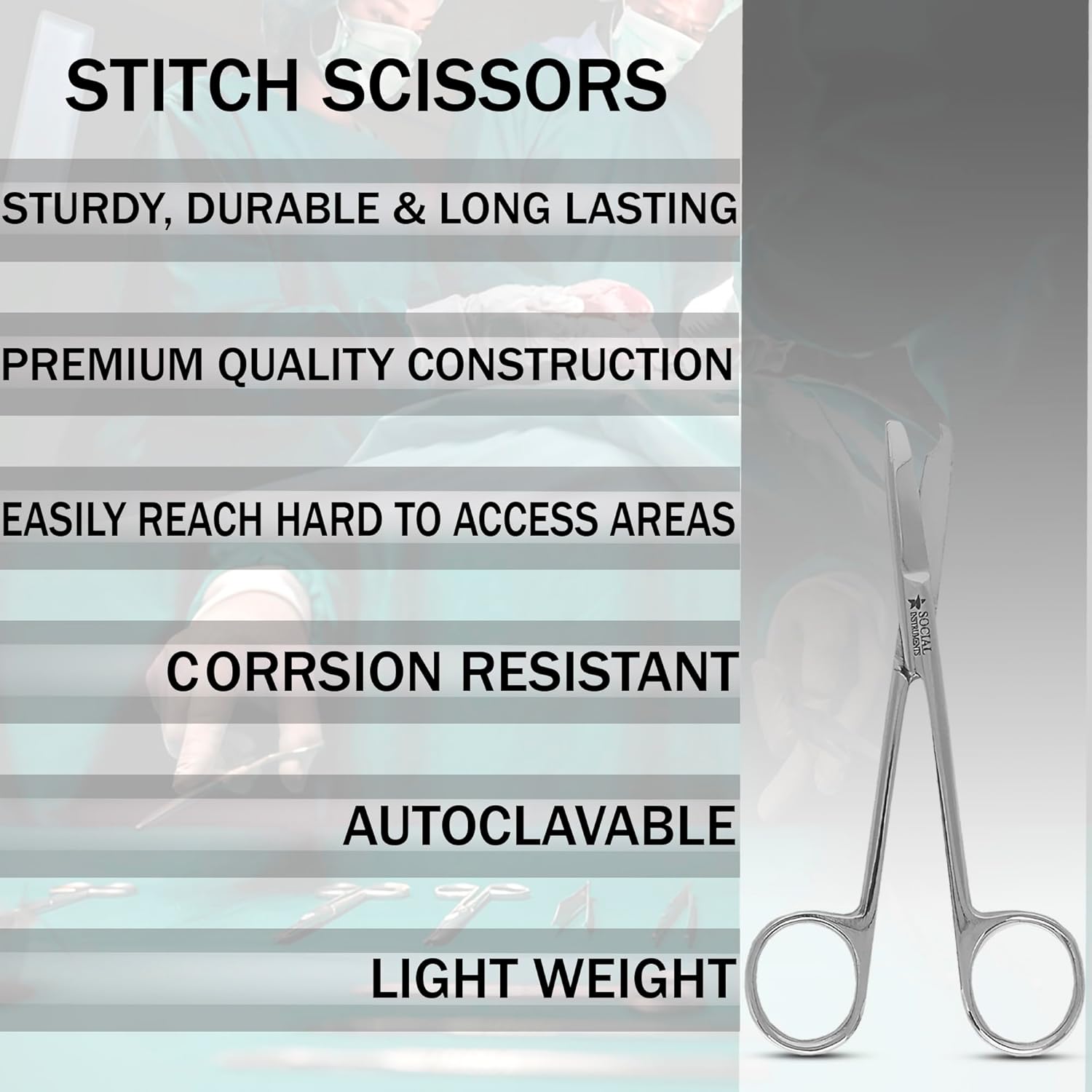 Our 4.5 inch Suture Stitch Scissors are a professional-grade surgical instrument designed for precision suture removal. Crafted from high-quality stainless steel, they feature a curved tip with a small notch that gently lifts and cuts sutures without harming surrounding tissue. Ideal for healthcare professionals, veterinary use, or medical students, these scissors offer a reliable grip and consistent performance. Reusable and autoclavable, they’re built to last in any clinical setting. suture removal scissors surgical stitch cutter nurse scissors for stitches medical scissors for sutures blunt tip suture scissors stainless steel stitch scissors ✔ Premium Stainless Steel – Rust-resistant & autoclavable. ✔ Precision Sharp-Blunt Tips – Safe for suture removal. ✔ 4.5” Length – Ideal for medical professionals & first aid. ✔ Ergonomic Handle – Reduces hand fatigue during procedures. ✔ Multi-Use – Nurses, vets, surgical kits, emergencies.