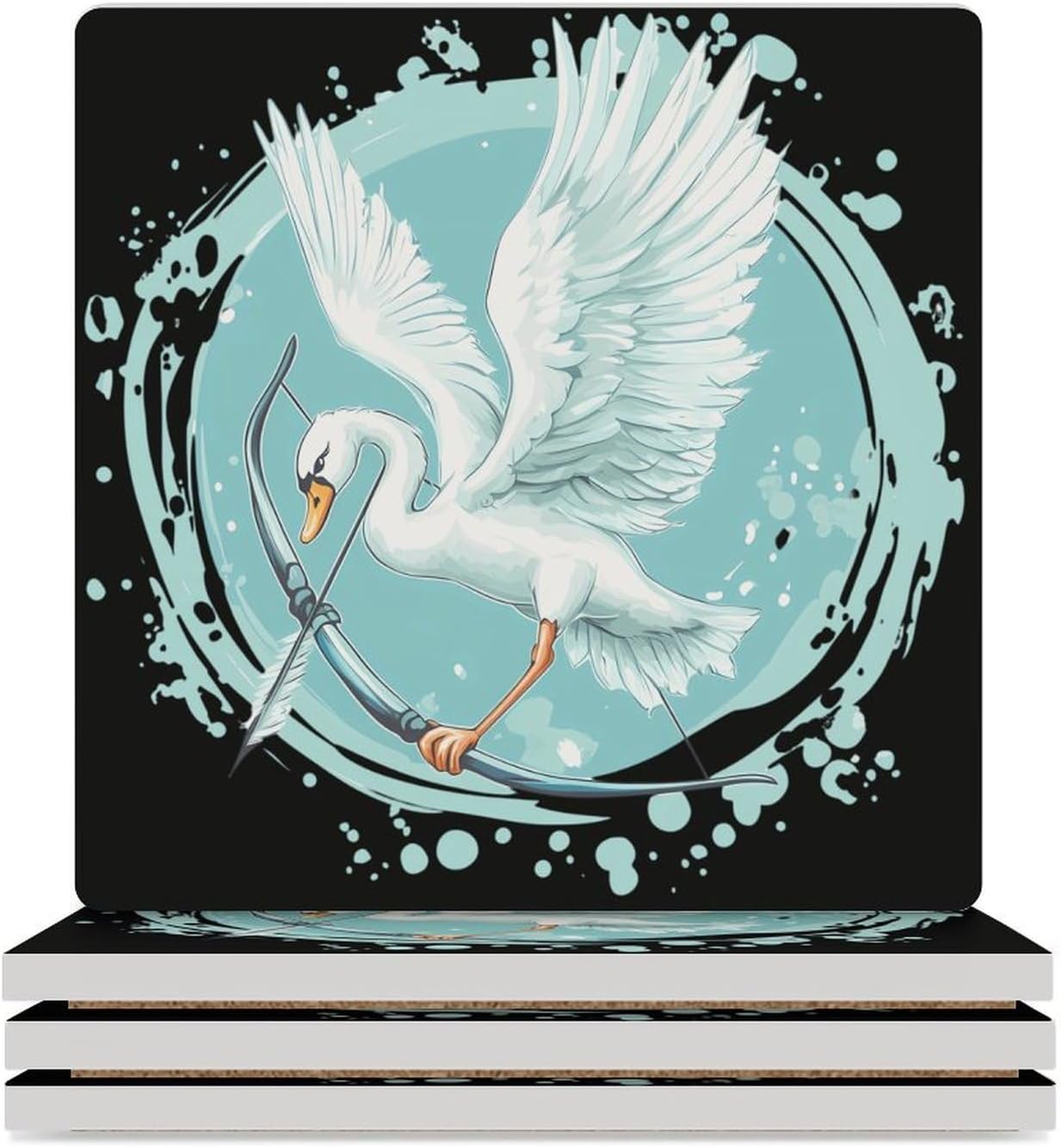 Swan Archery Sports Ceramic Coasters Square Drinks Coaster Coffee Table Decor Table Coaster for Home Bar
