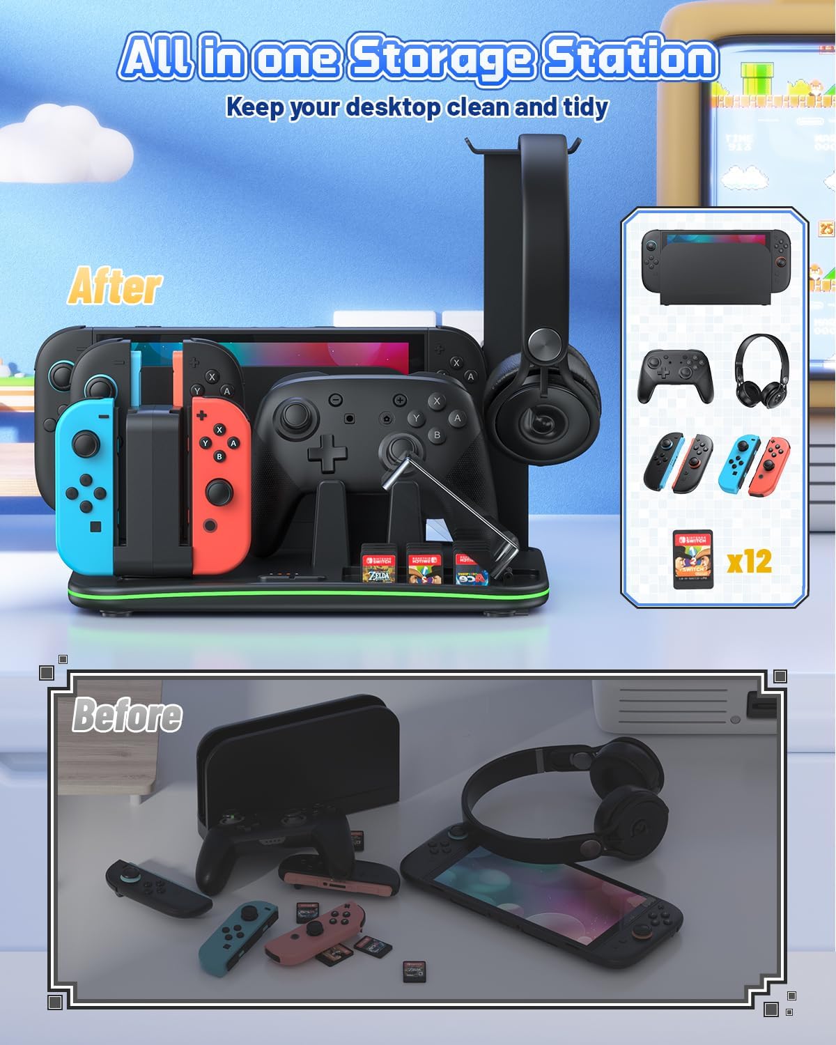 | Included Components | 1 * 12 Game Cards with Transparent Cover, 1 * Headset Holder, 1 * Joycon Charge Dock, 1 * Pro Controller Holder, 1 * Switch 2 Organizer Station with Fan |