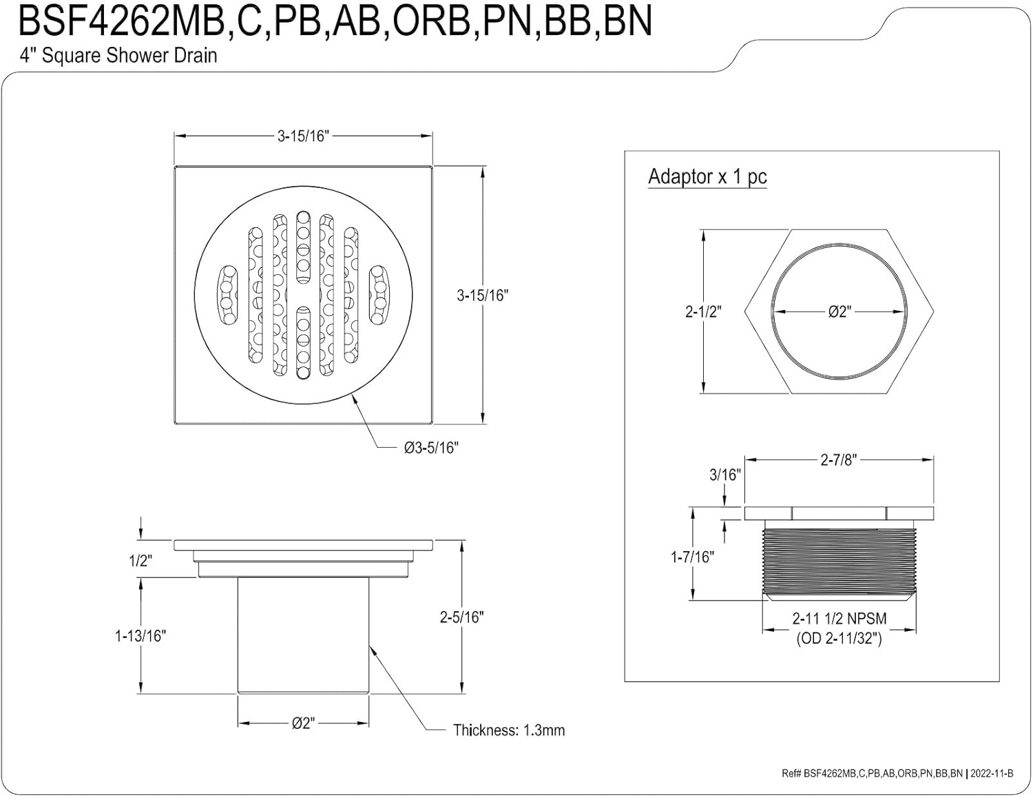 The Watercourse collection features an array of shower drains in multiple finishes. From simple, non-obtrusive grid-cut floor drains to ornate embossed floral patterns the Watercourse collection offers a range of selections. Watercourse drains install a variety of ways and fit a range of both square and circular drain openings. Please see each drain for its detailed specifications and compatibility. The Symmetric drain flange in the Watercourse collection fits a 4" x 4" square and features symmetrical rounded-slot cutouts on its circular hair catcher to prevent foreign objects entering your drain. The design comes in Chrome, Polished Brass, Antique Brass, Oil Rubbed Bronze, Polished Nickel, Brushed Brass, Brushed Nickel and Matte Black to match nearly any fixture and any design.