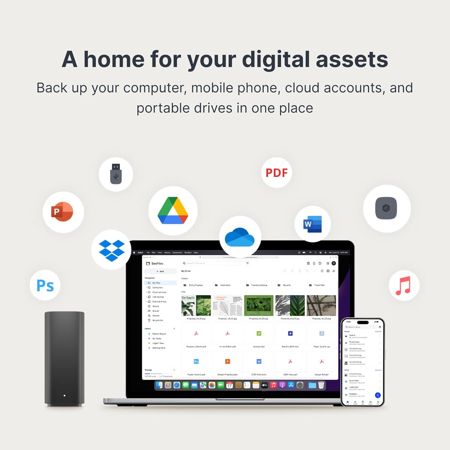 Synology BeeStation 4T is a prebuilt and configured solution meaning that no storage or network expertise is required, easily allowing users to store, access and share files over the web, from your desktop or on mobile devices, allowing for all data to be synced. Back up files from Google Drive, OneDrive, Dropbox, and external drives to one central place, with the ability to share storage with family and friends so that everyone has their own personal storage space.
