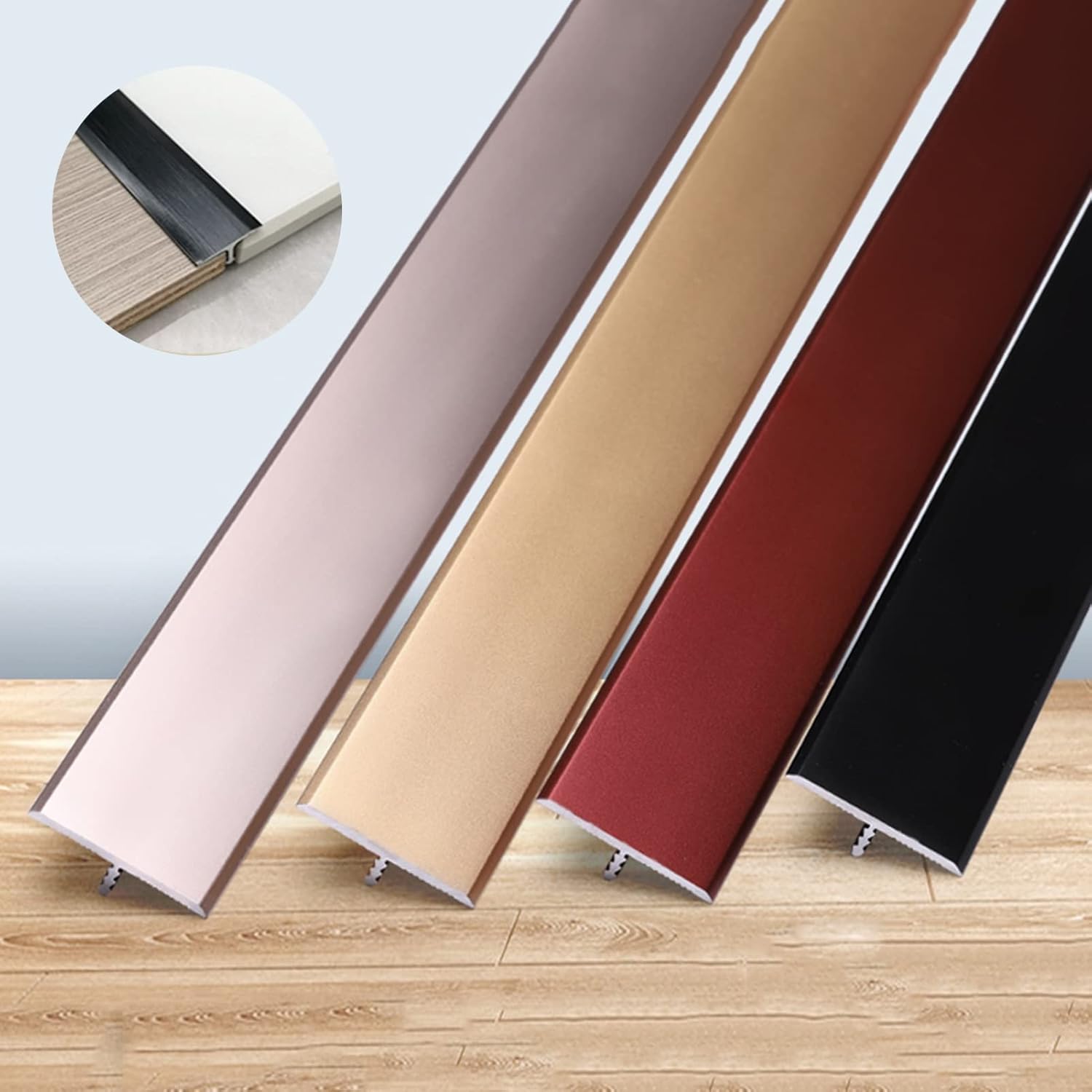 Description: The floor transition strip for a particularly aesthetic finish when connecting different floor coverings are an ideal solution for connecting carpets with parquet or tiles, especially as they compensate for differences in floor height. Product Specifications - Material: aluminium alloy. - Colour: Black, Gold, Red, Silver. - Length: 90 cm, 100 cm, 110 cm, 120 cm, 130 cm, 140 cm, 150 cm. - Width: 3.2 cm/1.2 inches Features: Made of excellent quality T-molded aluminum alloy, corrosion resistant, durable. Provides a smooth transition between carpet and tile or carpet with floor and edge decoration. Waterproof, easy to clean and maintain. It is used for doors, room entrances or other places where two surfaces of adjoining floors meet. The threshold transition strip is suitable for residential nursing homes, carpet doors to bathrooms, sweeping robots, walkers/wheelchairs, floor covering strips, laminate or other floor surface. Easily cut with a saw to fit any application. Package includes: 1 x Floor Transition Strip Note: Due to manual measurement, there may be an error of 1-3 cm. Slight photography and different displays may cause the color of the objects in the photo to be different from the real thing.