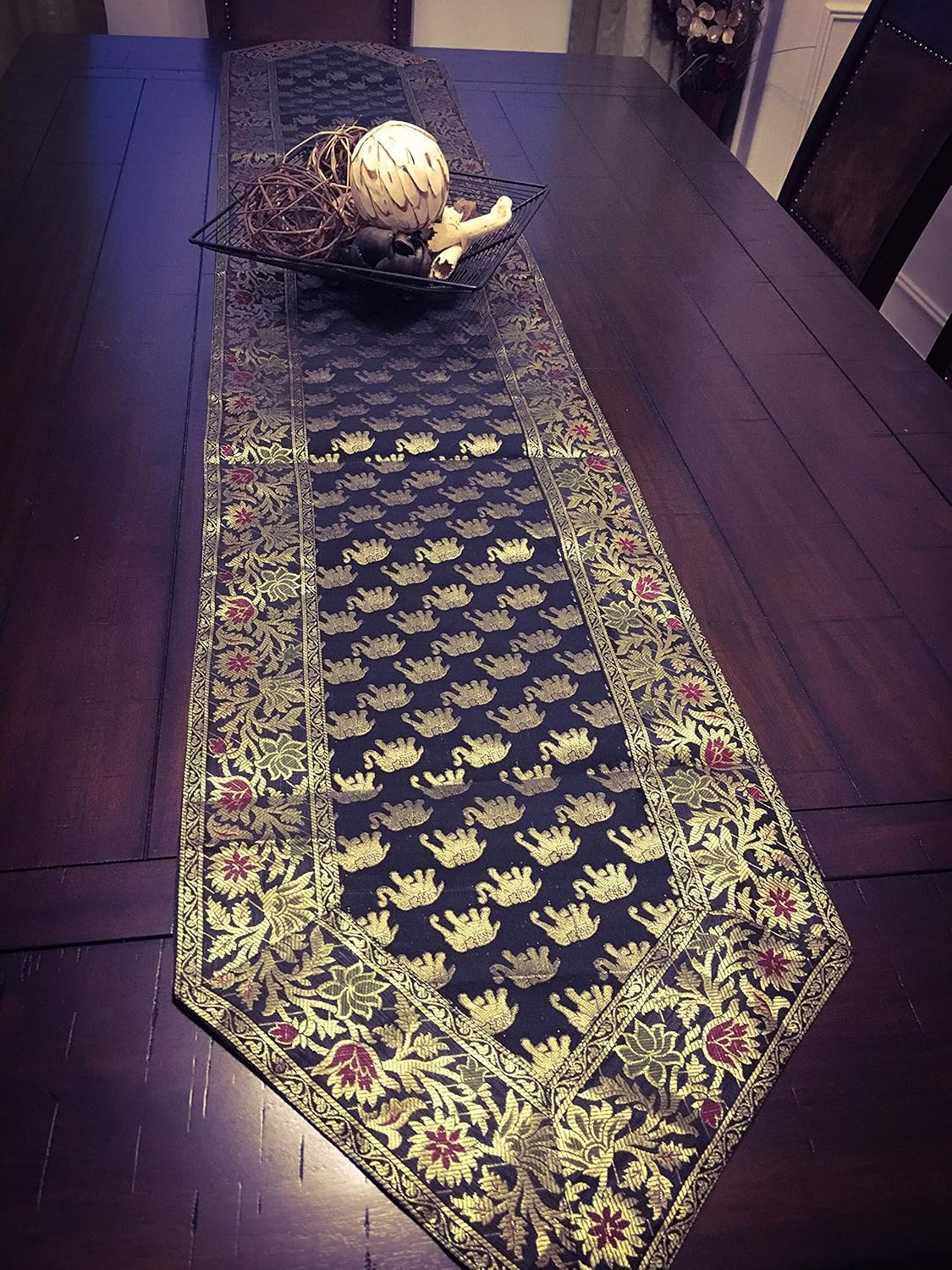 Beautiful Table Runner with Brocade border and elephant design in the center comes with the tinsel tassels. Size: 14 X 80 Inch, Size is approximate as each piece made separately. Material: Art silk, Cleaning Instruction: Spot clean. Colors look different in different light settings. Colors may vary slightly from photos due to different monitor settings.
