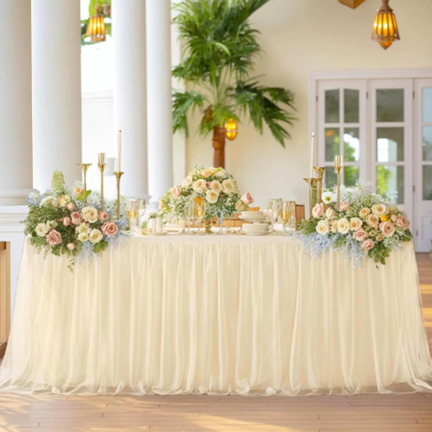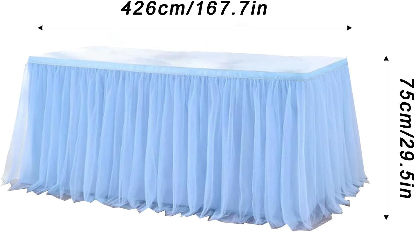 Transform your event décor with a pink tulle table skirt that brings charm, elegance, and a soft romantic touch to any occasion. The flowing texture and delicate color instantly elevate the visual appeal of your setup, whether you're creating a dreamy dessert table, a birthday party backdrop, or a photo-ready wedding reception scene.The layered design flows effortlessly to the floor, creating movement and volume that captures attention without overpowering your space. Perfect for decorators seeking a gentle yet luxurious effect, this table skirt blends seamlessly with themed décor or seasonal arrangements. Whether paired with fairy lights, florals, or balloon arches, it enhances the overall aesthetic with minimal effort.Ideal for hosts who value both function and beauty, this table skirt offers a polished look while cleverly concealing table legs, storage, or event essentials underneath. It’s an essential décor piece that brings joy to every celebration—timeless, reusable, and always in style.Product SpecificationsProduct Name: Tulle Table SkirtMaterial: PolyesterColors: White, Champagne, Pink, Green, Blue, PurpleDimensions:48 x 29.5 in72 x 29.5 in108 x 29.5 in167.7 x 29.5 in