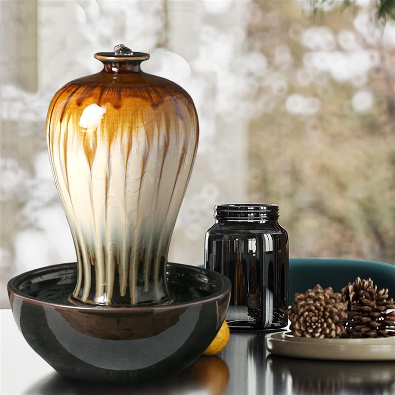 Relaxation and Stress Relief: Enjoy the gentle sound of cascading water as it helps to reduce stress, promote relaxation, and create a peaceful atmosphere.Product name: Desktop fountainProduct material: ceramicApplicable scenarios: This desktop fountain is very suitable for families, offices, living rooms, halls, bedrooms, apartments, hotels, etc.!1. Due to the difference of light and shooting angle, there may be slight chromatic aberration, please understand.2. Please confirm the color before purchasing.3. Product photos do not include products other than products.4. Manually measure the size, there may be some small errors, please refer to the actual product, thank you.
