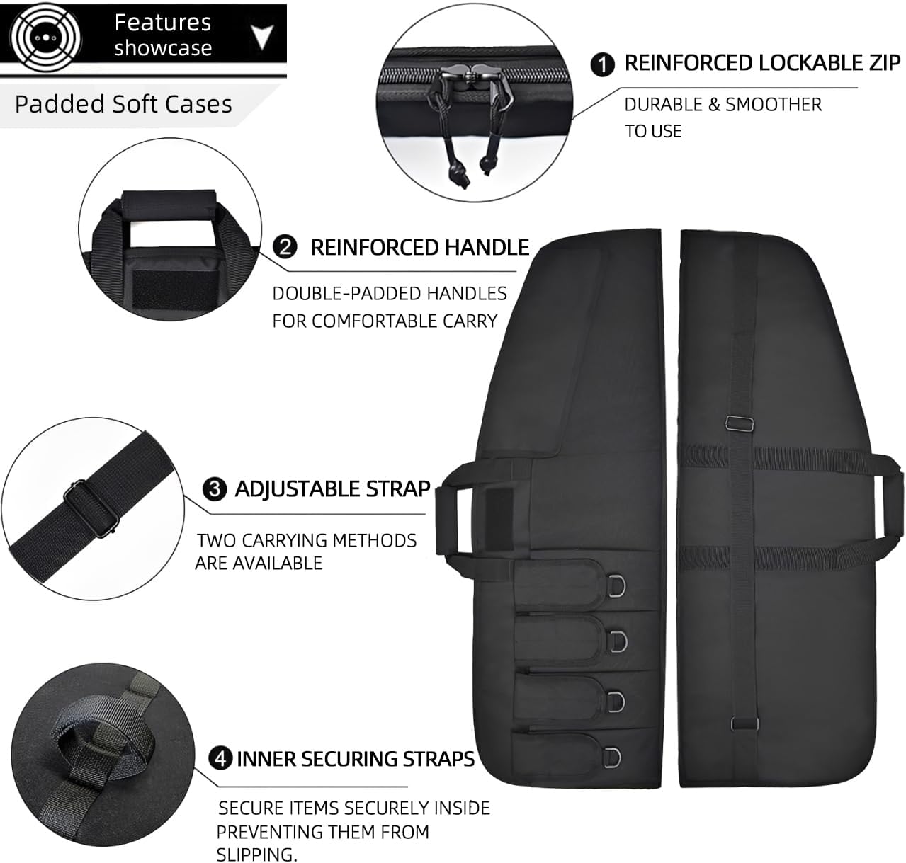 SIZE OF Rifle Case: External dimensions of 42"L x 12"H--Fit up rifle to 40";36"L x 12"H--Fit up rifle to 34".