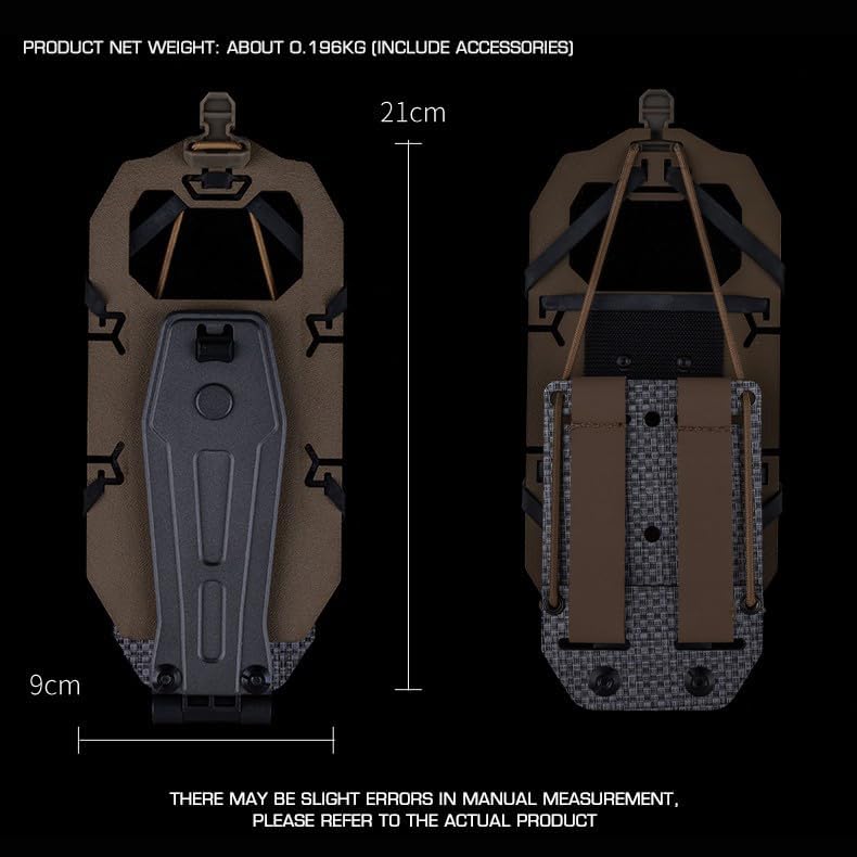 Material: KYDEX+Aluminum Alloy Product color: Camo/BLK Camo/BLK/Mud color Size 21.5 * 10 * 4.5cm Weight: 196g Applicable scenarios: tactical games, film and television props