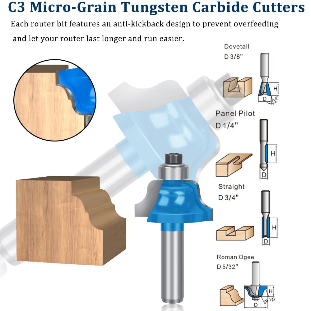 Company: TAIWAIN Brand is a tool company dedicated to household and commercial handwork. We insist on using the best materials, the best quality, and the best price to serve our customers.TAIWAIN Tools are perfect for flawless production of Shaker rails and stiles for cabinet doors, flooring, paneling and many other projects. We select materials, fine workmanship, and pay attention to every detail. Provide you with every excellent tool. And give you a good after-sale protection. Package Specifications: Type: router bit Router bit cutter material: YG6 Solid Hardened Steel Router bit body material: 45# Industrial grade micro grain carbide Package included: Pakage--Tongue and groove router bit 1/4 '' shank 37 pcs. Featrues: 1.Constructed using smooth exact materials, Using high-grade YG6X original alloy. High abrasion resistance, high-precision grinding technology. Strong . these woodworking tools can withstand some heavy duty use and the test of time. 2.Easy to operate--Use on CNC and other automatic table-mounted portable routers. perfect for woodworking, edging, trimming, grooving, veining wood projects, Works great with all kinds of materials and surfaces. 3.Precautions--Please avoid to cut ferrous metal and non wood materials, such as steel, iron and sand.The cutter body of the milling cutter is steel, please keep it away from water to avoid rust.