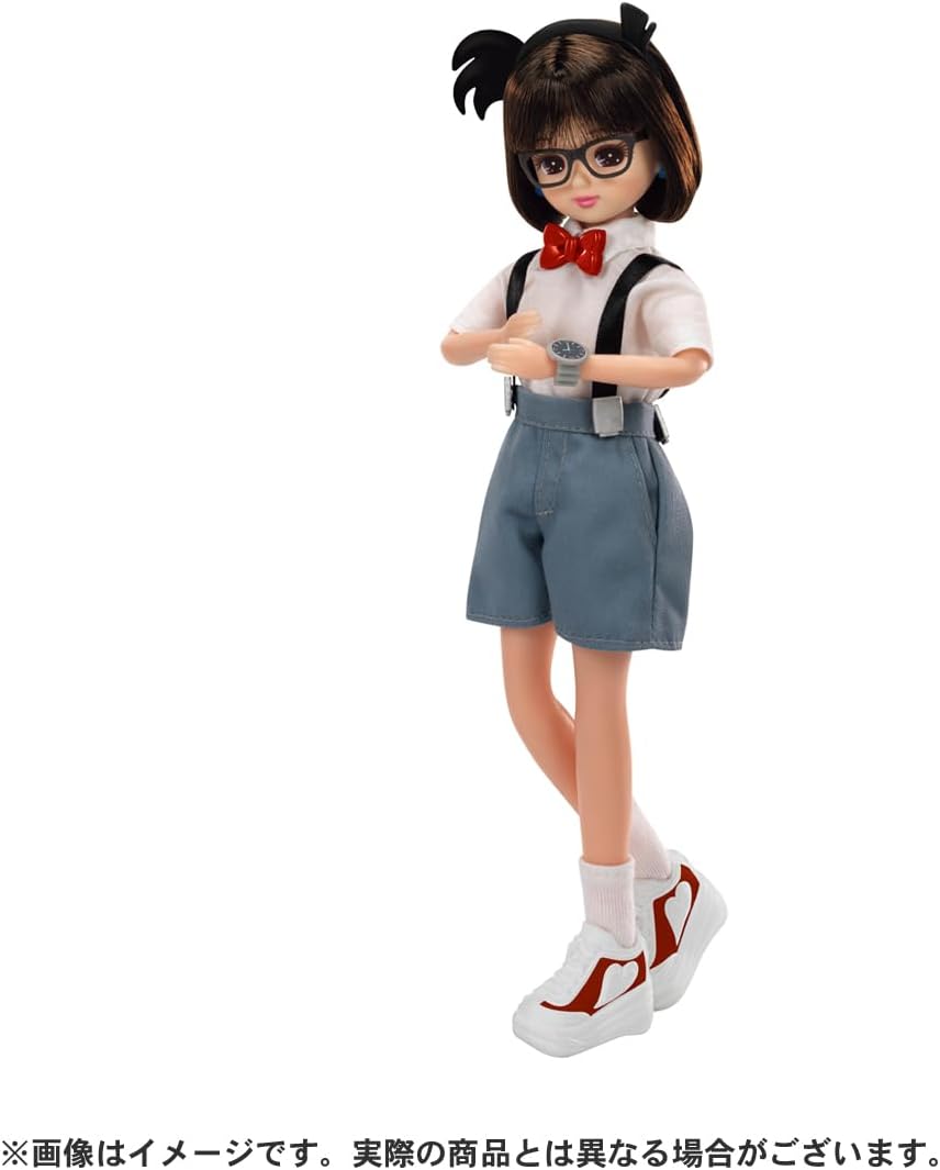 Introducing Licca-chan who became Conan Edogawa from Detective Conan! This is Licca-chan wearing the costume of Conan Edogawa from the TV anime Detective Conan. With the trademark Conan hairstyle headband you can transform into Edogawa Conan It also comes with a watch type anesthetics gun and shoes. Set Contents: Doll (Y shirt, jacket, pants, socks, earrings, underwear) (1), conan headband (1), shoes (1), watch type anesthetic gun (1), glasses (1).