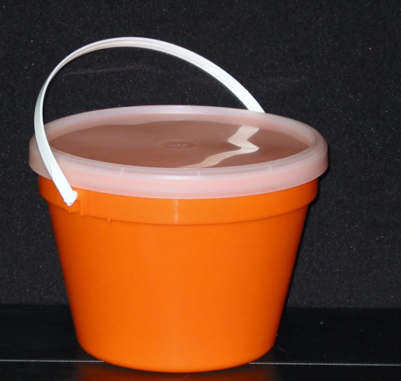Buckets are brilliant in color and have a white handle. Lid fits very smug and creates an air tight container. The buckets are used for so many different reasons. A few of them being canisters, storing baking items, using them for picking small amounts of fruit, organizing childrens small toys, the sorting of nuts and bolts, potted plants to name a few. Buckets stack well for storage.