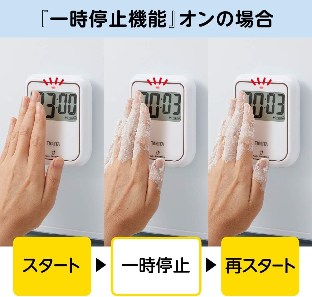 There is a magnet on the back of the main unit and a hole for wall mounting. Temperature and humidity comfort zones Equipped with a contactless sensor, so you can stop and start the timer just by pressing your hand. Waterproof grade IPx5 for peace of mind even when wet, and can be washed even if it gets dirty. You can change the volume and duration according to the location you use it. Comes with LED lamp for easy visual clarity A mark indicates when the battery is low.