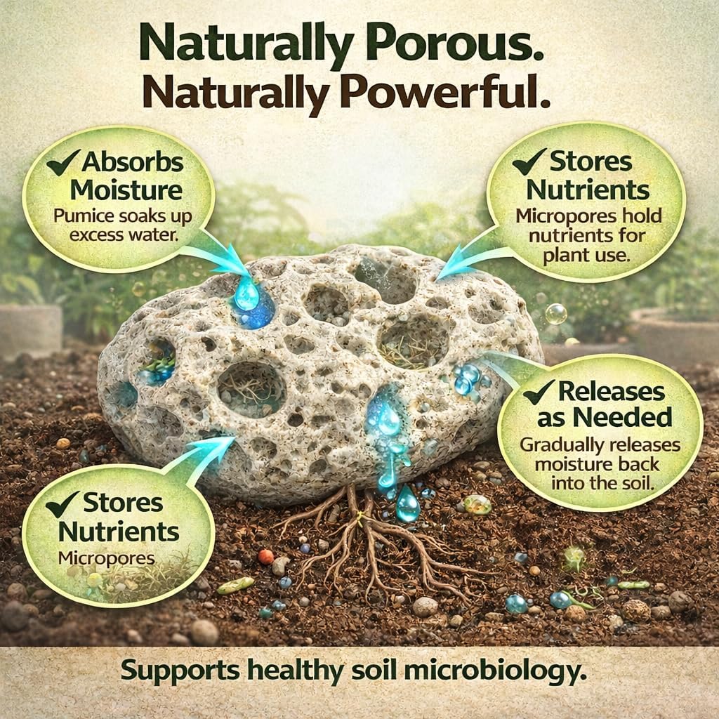 Horticultural pumice has amazing water and nutrient retention abilities because of its surface area composition. This porous rock absorbs moisture and releases it as needed by the surrounding soil. Nutrients can be held within the pores of the stone and be used by beneficial soil microbiology. Pumice aids in the longevity of the soil. We use pumice in our Cactus and Succulent Mix, as well as our De La Tank’s House Plant Mix. Put pumice in your potted plants to boost the moisture holding capacity of your existing soil and allow air better access to the root zone.