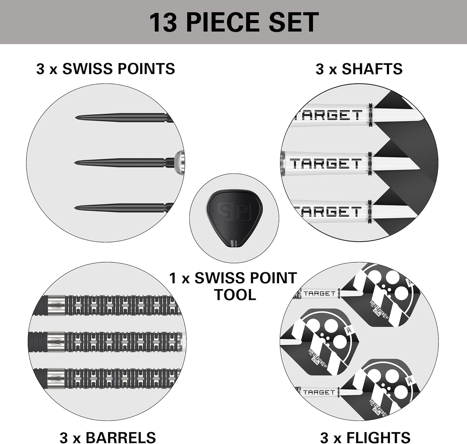TARGET Darts Chris Dobey Hollywood Action 90% Tungsten Steel Tip Swiss Point Dart Set – 22G Player Edition Darts, Pro Grip Shafts & Pro Ultra No.2 Flights, SP Tool Included