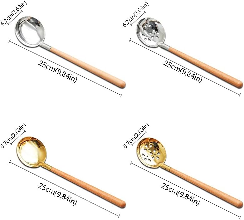 Spoon head material: stainless steel Handle material: wood Quantity: 2 pieces Applicable scene: family restaurant Size: Length 25cm (9.84) * Width 6.7cm (2.63in) Dimensions are all manually measured, there are slight gaps, please refer to the actual product received