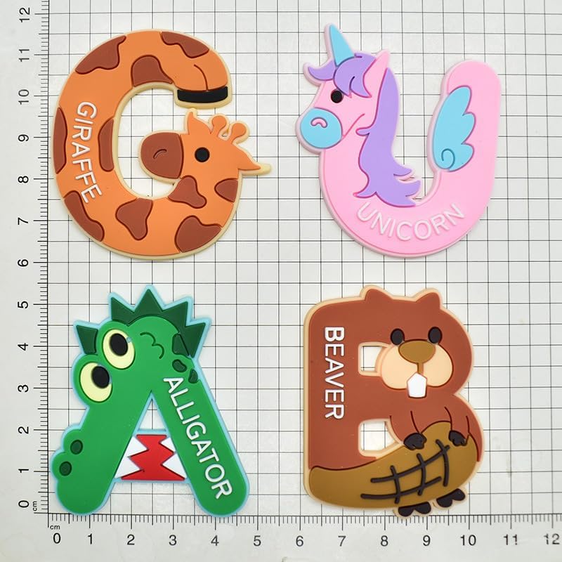 Fun Learning Tool: Each magnet features a cute animal corresponding to a letter (A for Alligator, B for Bear-), helping children connect letters with animals and words.Ideal for early literacy and phonics. Premium Soft Rubber: Made from soft, flexible rubber that feels comfortable to touch and won’t damage surfaces.Bright colors are fade-resistant. Interactive Lessons: Use them to teach letter recognition, phonics, animal names, and simple spelling.The animal theme makes learning memorable and fun. Complete Alphabet Set: Includes all 26 letters from A to Z, each with a unique animal design.Kids love collecting them and learning the alphabet in a playful way. Educational Fun: Introduce letters and animal names early.Colorful animals capture attention and spark curiosity.Perfect for sensory play and early language development.