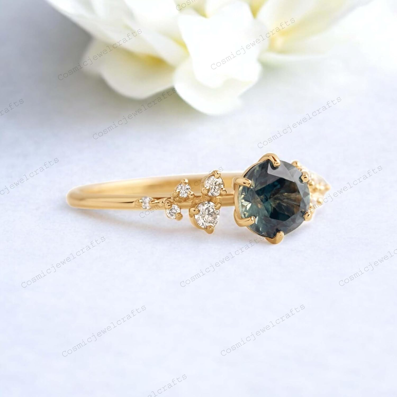 Make your proposal unforgettable with this stunning Teal Montana Sapphire Engagement Ring, beautifully crafted in 12K yellow gold and accented with sparkling diamonds. Featuring a mesmerizing Montana sapphire in a rich teal hue, this one-of-a-kind ring captures the essence of elegance and individuality, making it the perfect choice for someone who values unique and meaningful jewelry. This engagement ring is not just a symbol of your love—it's a tribute to timeless beauty and craftsmanship. The Art Deco-inspired design brings vintage charm into the modern era, with intricate detailing and a radiant band that enhances the bold sapphire and diamonds. Whether you’re celebrating a September birthday or simply want to gift something unforgettable, the Montana sapphire is the perfect choice, representing wisdom, loyalty, and sincerity. Key Features: 12K Yellow Gold: A durable and luxurious metal that brings a warm, timeless glow to this stunning engagement ring. Teal Montana Sapphire: A rare and vibrant gemstone known for its captivating teal color, making this ring truly unique and special. Diamonds for Extra Sparkle: A collection of diamonds surround the sapphire, adding brilliance and shine to the piece. September Birthstone: The perfect engagement ring for those born in September or for anyone who appreciates the symbolism of sapphires—loyalty, wisdom, and faithfulness. Handmade Art Deco Design: Carefully handcrafted with an intricate Art Deco pattern, blending vintage elegance with a modern twist. Perfect for Valentine's Day or Special Occasions: This ring is an ideal Valentine's Day gift or a stunning way to celebrate your engagement, anniversary, or any significant moment. Customizable Options: Make this piece truly yours by customizing the design or engraving a meaningful message for a personal touch. Give her a gift she'll cherish forever. With its striking design and meaningful symbolism, the Teal Montana Sapphire Engagement Ring is a celebration of love, beauty, and individuality—an heirloom-quality piece that will stand the test of time. Order today to create a lasting memory for the love of your life!