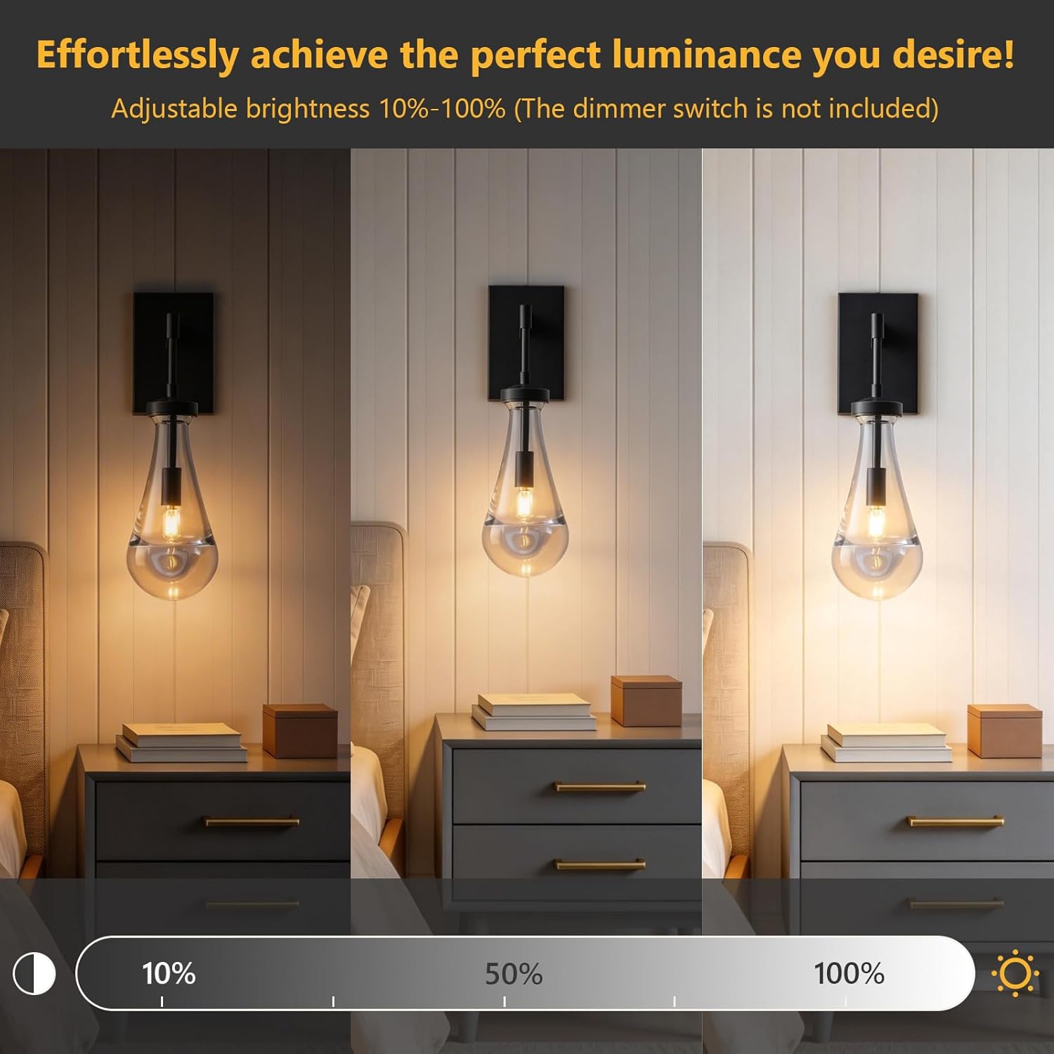 • Smooth Dimmable Brightness Control – Includes a E12 bulb for easy setup. Pair with your compatible dimmer switch (sold separately) for seamless 0–100% brightness adjustment—from soft, cozy ambiance to bright task lighting with these versatile bathroom vanity sconces.