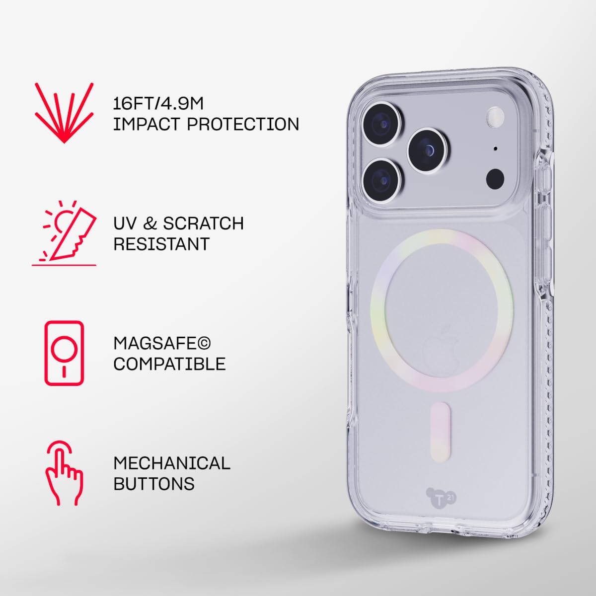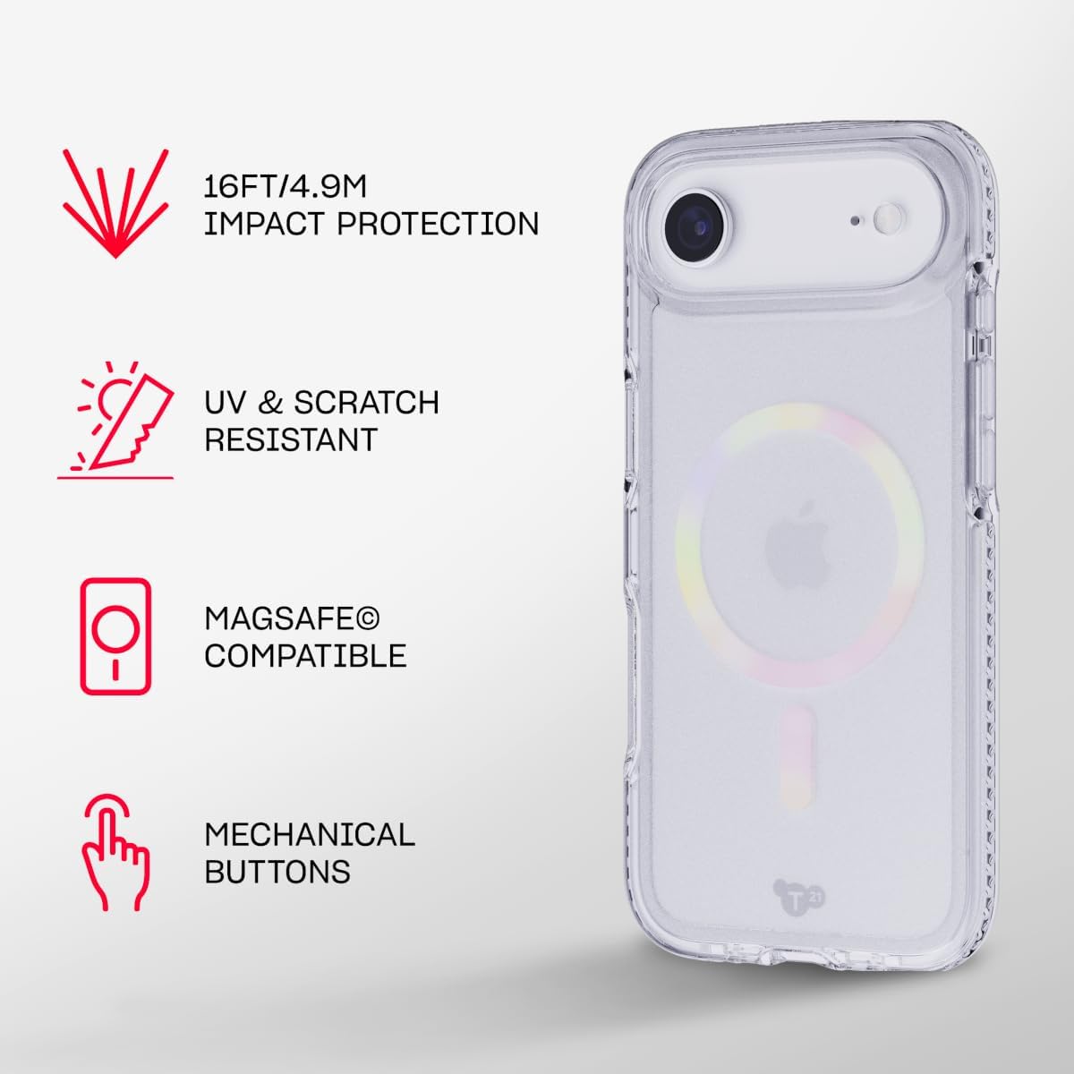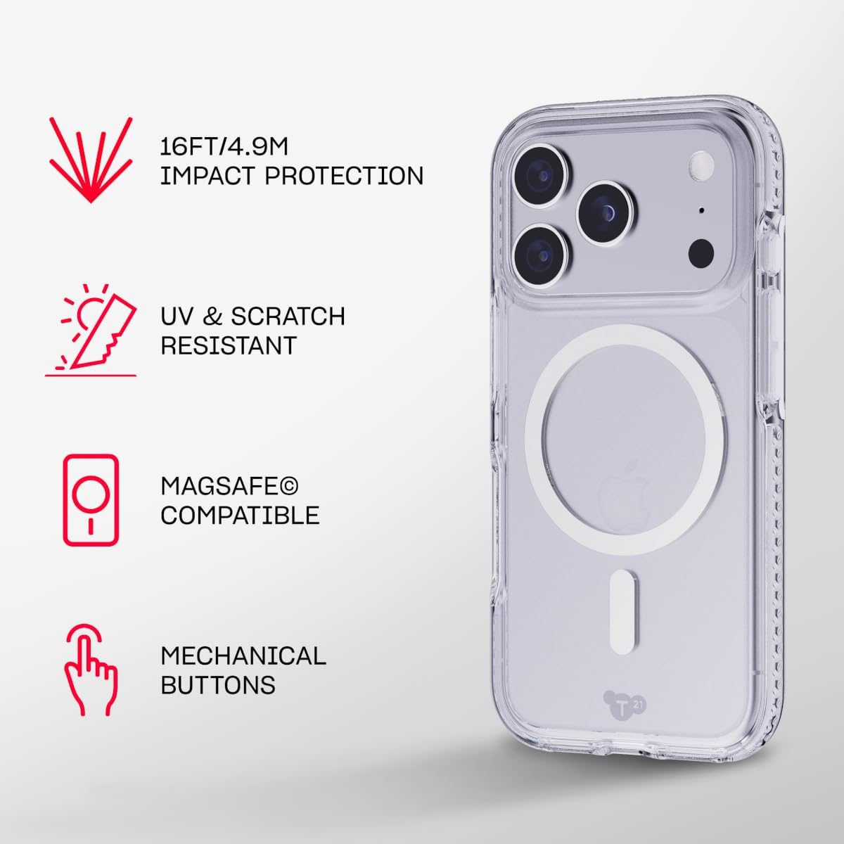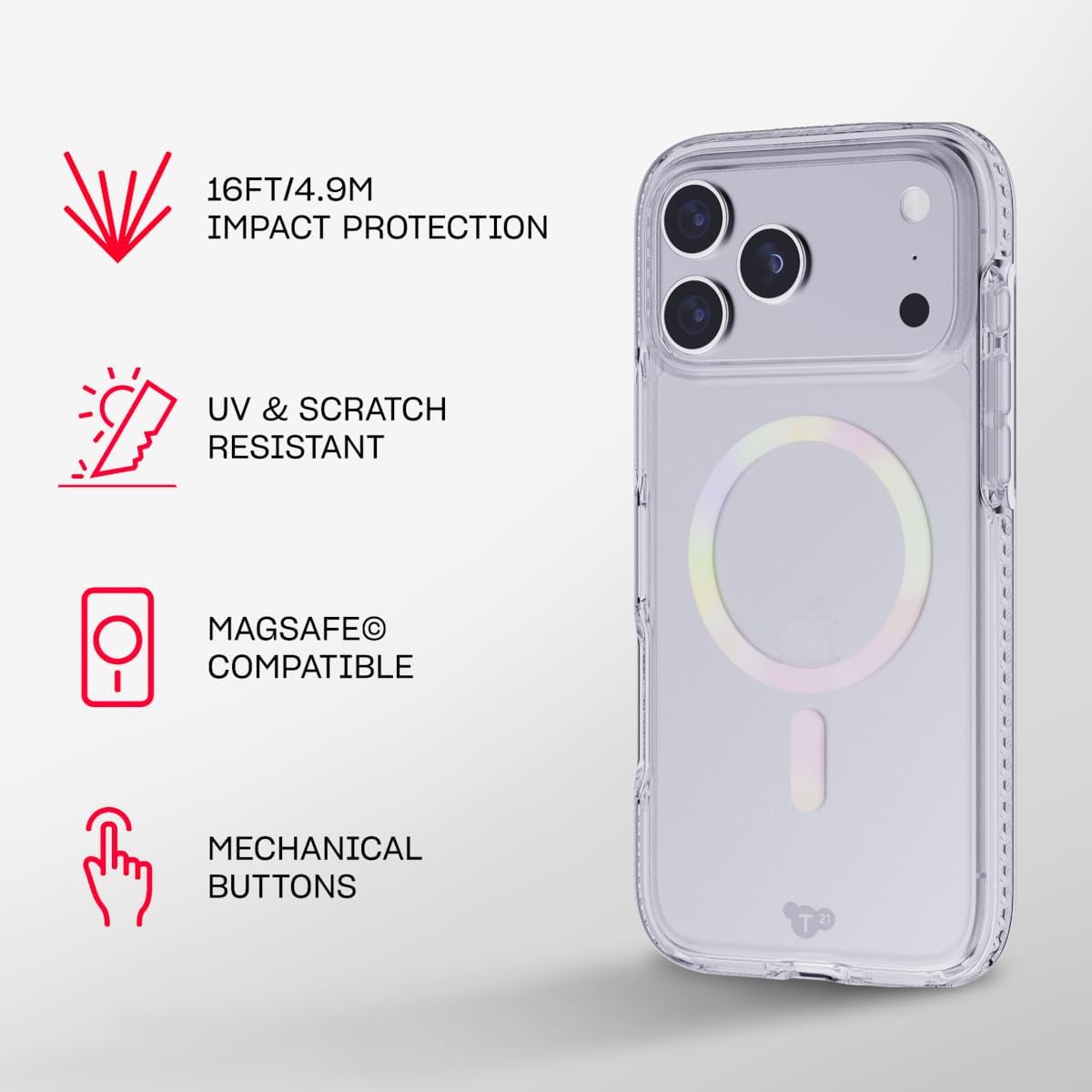 Protect your iPhone 17 Air with the Tech21 EvoCrystal — a modern protective case designed to keep your phone safe without compromising style or functionality. Crafted with proprietary impact-absorbing materials, this case defends your phone against drops and abrasions while maintaining a slim, ergonomic design. Built-in magnets enable full compatibility with Apple’s MagSafe ecosystem, so you can connect to wireless chargers, wallets, and car mounts with confidence. The Lunar finish adds a unique visual touch that complements your device’s aesthetic. Designed by Tech21’s team of scientists and engineers, this case blends advanced protection with everyday usability — backed by years of trusted innovation.