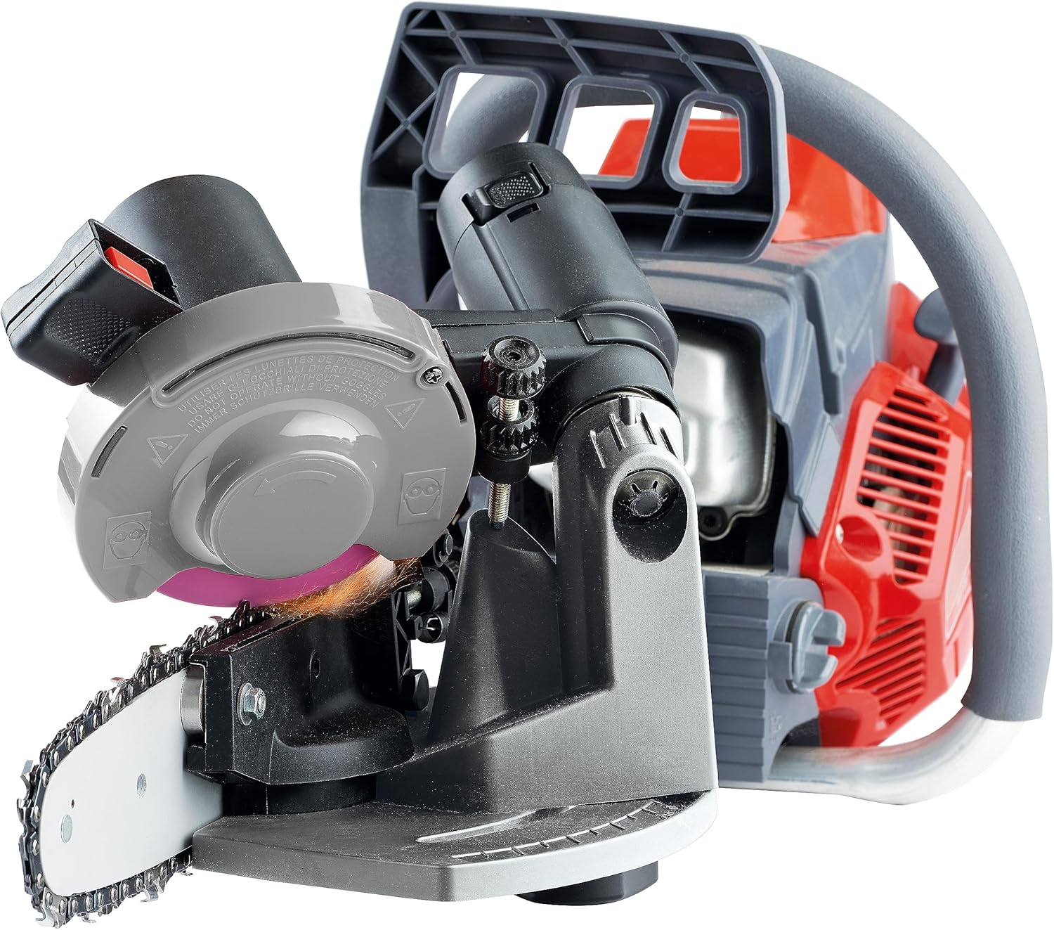 Tecomec Micro Jolly "Battery" Powered Guide Bar Mounted Chainsaw Chain Grinder. Sharpen your chainsaw chains on the job wherever you are with this all new great Tecomec bar mounted chainsaw chain grinder! Watch the YouTube video: https://www.youtube.com/watch?v=TkTOdYMYdXk&t=5s The chain grinder has the features and controls to provide a precise grind with professional results. It will sharpen virtually any round cutter chain type and size including 1/4", .325, 3/8" and .404 pitch chains. The vise angle guide is easily adjusted for cutter angles from 0 to 35-degrees. Features include an easy to operate manual cam vise, cutter length adjustment, grind depth adjuster and a safety on/off switch. This battery powered grinder is 10.8v, 22 watt and has a maximum motor speed of 6500rpm. The grinder includes (1) grinding wheel for sharpening 1/4", 3/8"LP (low-profile) and .325 pitch chains, (1) battery and (1) fast charger. Replacement grinding wheels for this grinder please contact us! Watch the YouTube video: https://www.youtube.com/watch?v=TkTOdYMYdXk&t=5s