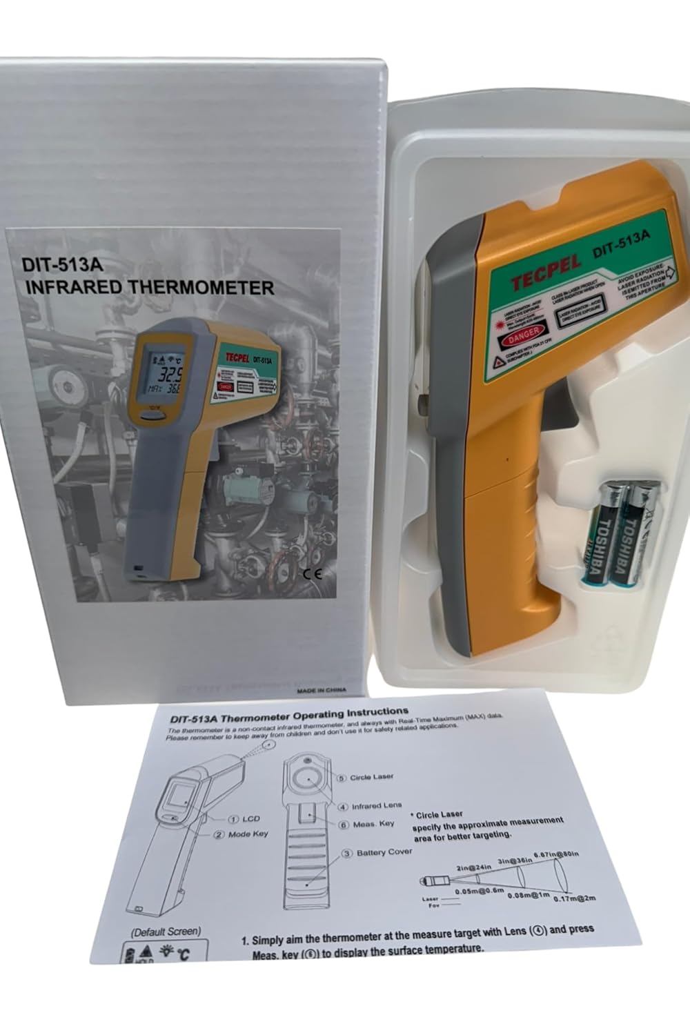 The DIT-513A Industrial Infrared Thermometer is a professional tool for industrial applications such as equipment hotspot checks and HVAC systems. It provides accurate measurements within -60~550°C and includes laser pointer and auto shut-off functionalities, suitable for diverse environments.