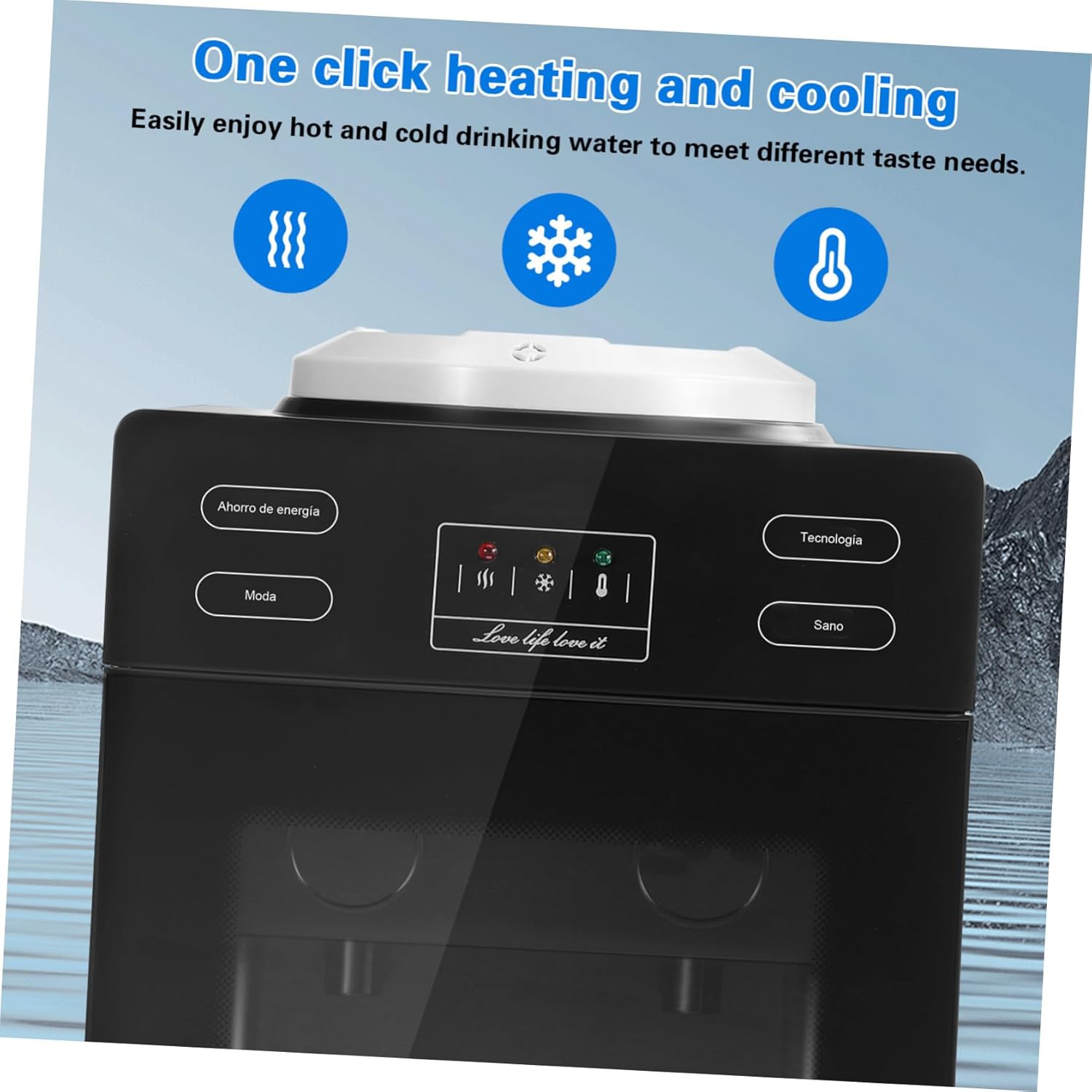 Package List 1 dispenser Characteristics -Water heating capacity: 4L/h ≥90℃ counter water dispenser -Water cooling capacity: 1L/h ≤15℃ countertop water dispensers -Rated frequency: 50Hz Water Heating Dispenser -Universal Bottle Compatibility: Features a detachable bottle seat that accommodates various bottle shapes and sizes for versatile use countertop water dispenser -Size:37.00X27.00X23.50 cm/14.54X10.61X9.24in cold and hot water dispenser -Rated power: 425W countertop water cooler -Space-Saving Design: Compact structure fits perfectly on countertops or desks, optimizing space in kitchens, offices, or small areas table top water dispenser -Type of protection against electric shock: Class Ⅰ water cooler bottom loading -Color:Black countertop water cooler dispenser -Heating power: 550W top loading water cooler -Working environment: 10~32℃ hot cold water dispenser -Cooling power: 75W hot water dispenser countertop -Product Info:Hot and cold water dispenser -Rated voltage: 220V water warmer dispenser -Material:Plastic counter top water dispensersGoods Descriptionwater dispenser table top Its compact design fits seamlessly on desks or countertops, saving space while enhancing convenience.bottom load water dispenser Note: This item comes with US plug, please confirm the voltage of your area before purchasing.countertop water cooler This countertop water dispenser offers hot and cold water options, catering to diverse beverage preferences.table top water dispenser With user-friendly dual knobs, accessing hot or cold water is effortless.top loading countertop water dispenser The detachable bottle seat supports various bottle types, ensuring adaptability