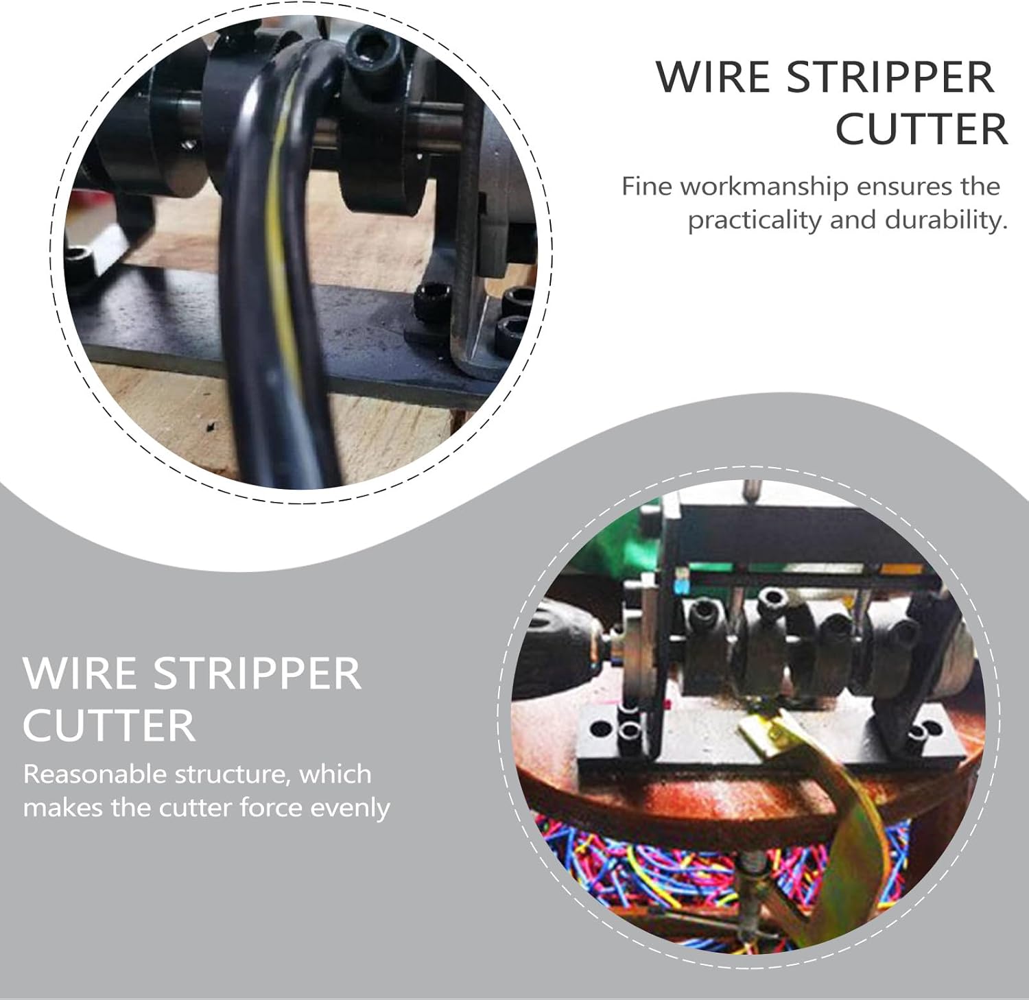 Package List 1 x stripper 1 x set of accessories 2 x stripper cutters Characteristics - Size: About 14.50X10.50X3.00cm/5.70X4.13X1.18in -Product Info:Wire stripper - Color: Silver - Material: Iron - With rational holes for specific gauges of wire, it can strip wires of gauge efficiently and accurately portable household wire stripper. - Selected good material, not easy to deform or break. - Wonderful workmanship ensures the good durability and practicality electric wire stripping tool. - It comes with the appropriate size, which is comfortable to hold and use. - The tool is made of high class materials, which is durable and practical.Goods Informationscrap wire stripping tool Selected good material, not easy to deform or break.wire stripping tool With rational holes for specific gauges of wire, it can strip wires of gauge efficiently and accurately.small wire stripper This reliable wire stripping tool is a good helper for your electric work.multi purpose wire stripping tool It performs even better in wire stripping works.manual wire stripping It comes with the compact size, makes it handy to use