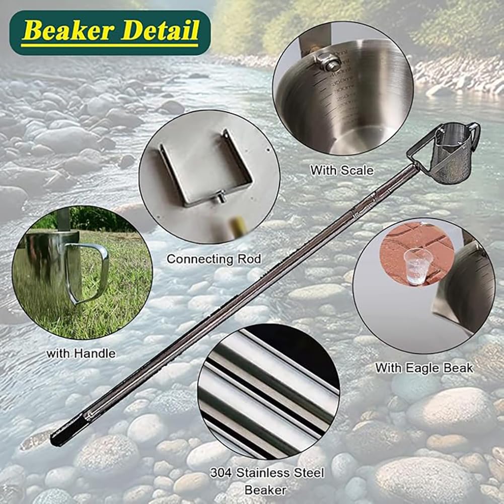 This is a well-made sampler that is easy to assemble and use. With it, your sampling work will be easier! Our product supports 360 degree rotation, allowing you to flexibly collect samples from multiple angles. The telescopic rod design allows you to easily collect samples from a high place without having to approach the water source! Colour: silver. Material: stainless steel. Capacity: 500 ml. Size: 0.65m/2.1ft to 1.5m/4.9ft, 1m/3.3ft to 2.5m/8.2ft, 1.1m/3.6ft to 3m/9.8ft, 1.17m/3.8ft to 4m/13.1ft, 1.2m/3.9ft to 5m/16.4ft, 1.4m/4.6ft to 6m/19ft .7ft Packing list: Water sampling with telescopic rod*1 Note: The above data is for reference only. The size is measured manually and there may be an error of 1-3 cm. Please refer to the actual product. Thank you.