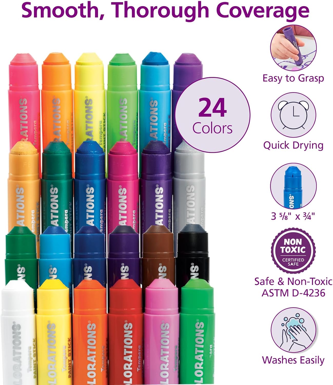 | Included Components | Tempera Paint Sticks, 24 Colors, Silky Smooth Color Application, Classic, Neon & |