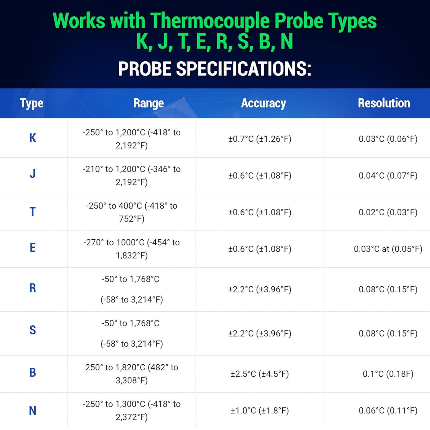 | Included Components | Sensor, K-Type Thermocouple, Holder, Adhesive Strip, Batteries, Manual |