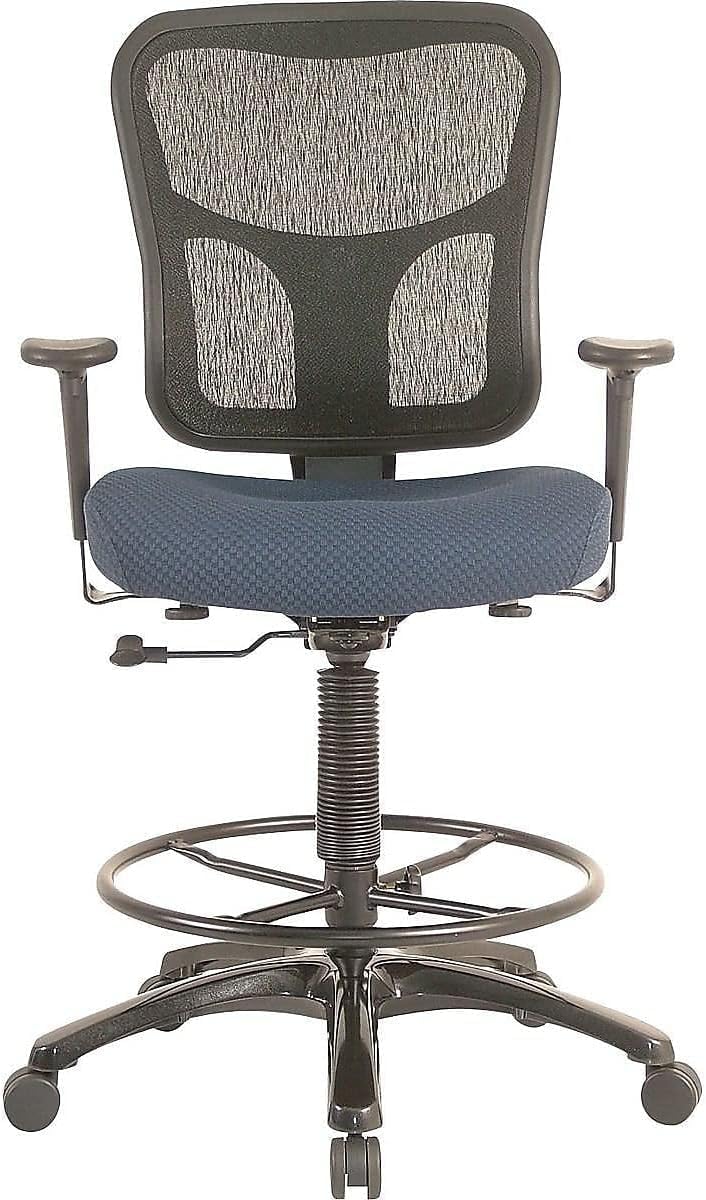 Enjoy the built-in lumbar support, breathable mesh back panel, and height-adjustable arms and back of this office stool while concentrating on tasks. Crafted with authentic TEMPUR material, this chair conforms to your body while a cooling gel top layer enhances breathability and temperature regulation. The seat adjusts from 24.4 to 33.5 inches high to suit various body types, and the height-adjustable foot ring provides extra support for feet and legs. This Tempur-Pedic drafting stool rolls smoothly across carpet via the sturdy dual-wheel casters for impressive mobility.
