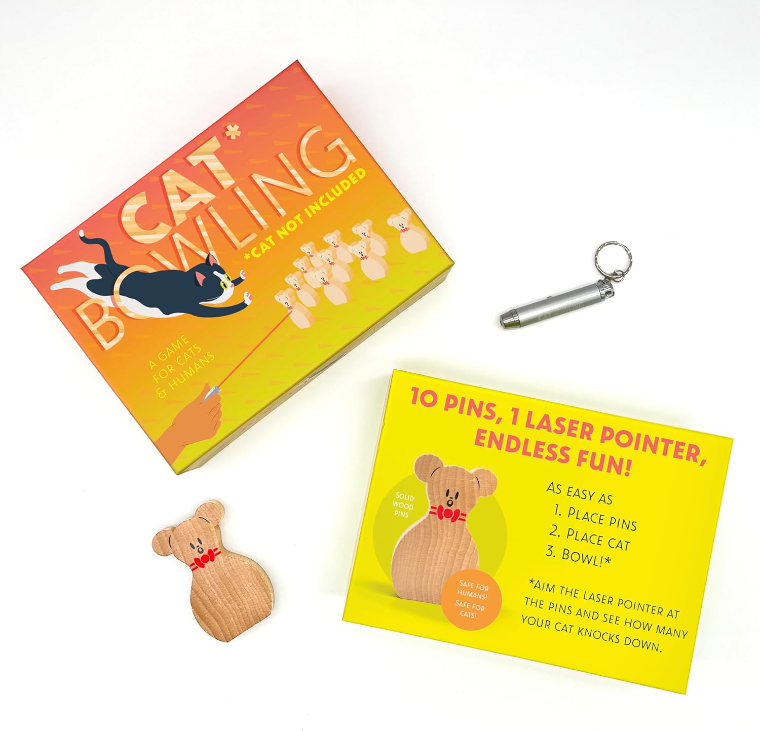 It’s as simple as pins, point, pounce! With Cat Bowling, let your cat be the bowling ball as you try to bowl the perfect game. A wonderful tool for spending quality time with your ferocious fur ball and the purr-fect gift for cat lovers (that they don’t already have ten of)