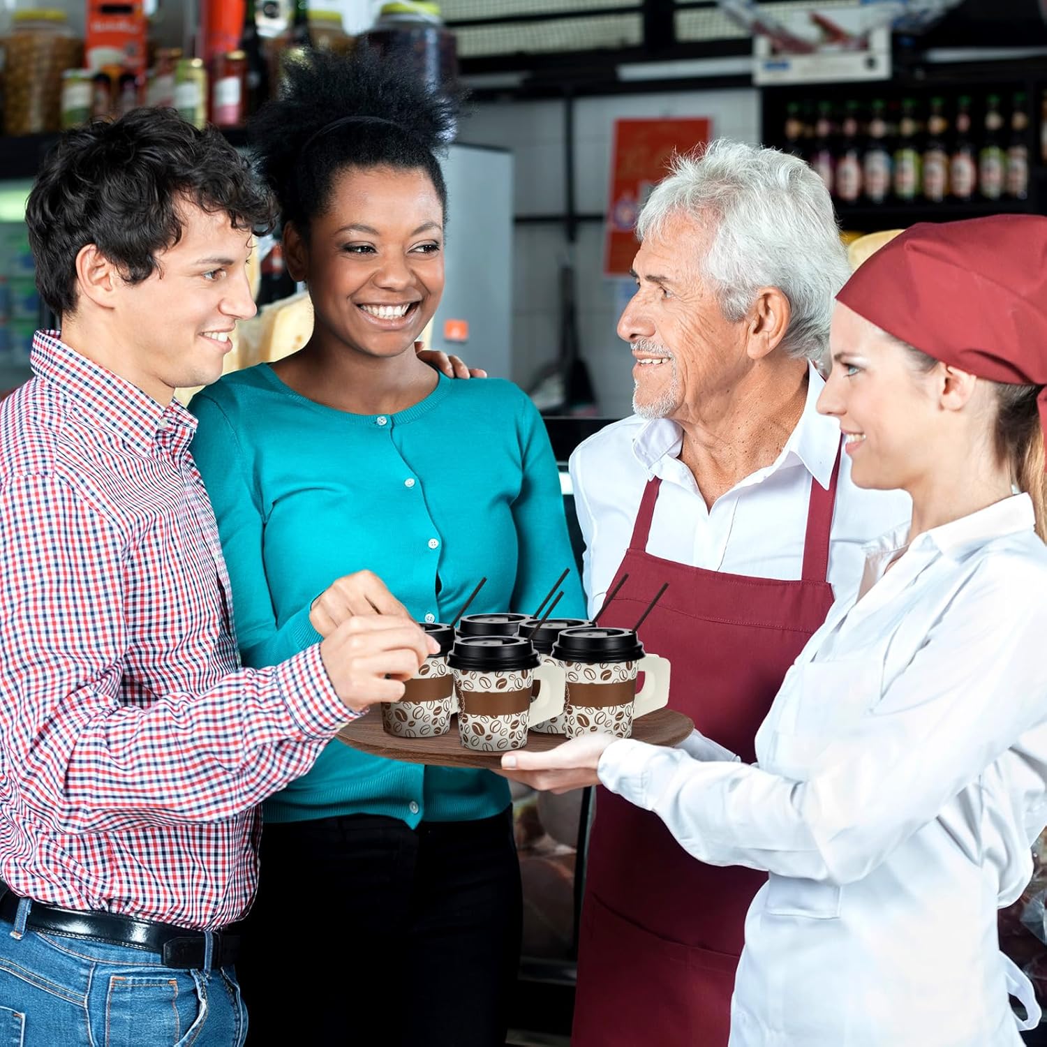 Features: These hot drink cups with lids adopt stylish prints, simple yet elegant, the combination of black and coffee color is practical and beautiful on many occasions. These paper coffee cups with lids are feasible to be sent as housewarming gifts to your friends, colleagues, neighbors relatives and some others, making them feel your sincere thoughts. Specifications: Material: paper and plastic Color of cups: coffee color Capacity of cups: about 4 oz Package includes: 200 Sets of disposable espresso cups Notes: Manual measurement, please allow slight errors on size. The color may exist a slight difference due to different screen displays. Poking risk may exist, children should use under the watchful eyes of adults.