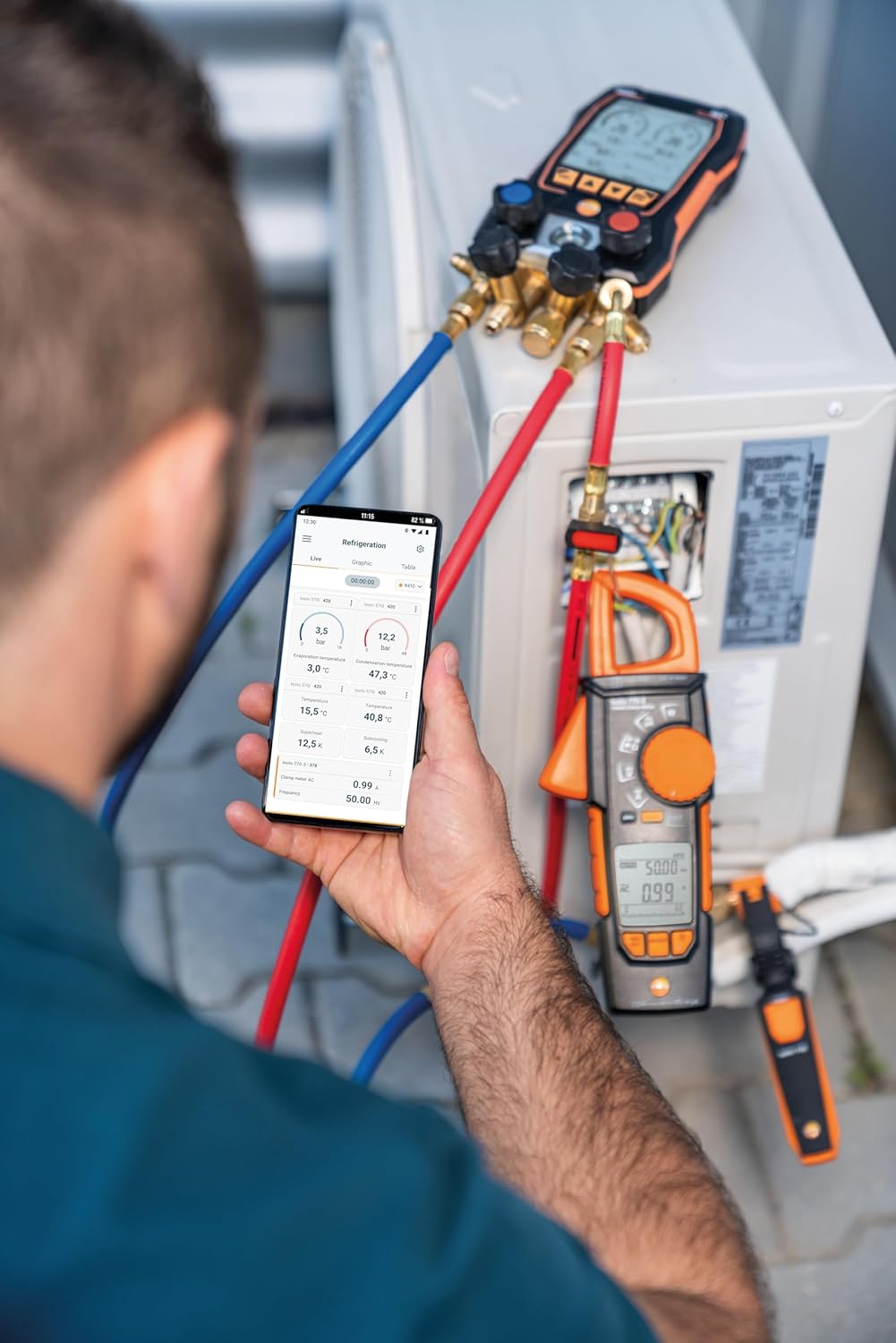 Testo 770-3 clamp meter The voltage meter has a retractable pincer arm that allows accurate measurement of tightly packed cables. It supports a wide range of measurements (DC voltage up to 600.0 V & AC voltage up to 1000.0 V). True RMS captures precise values for AC & DC currents up to 600.0 A. Automatic AC/DC detection and parameter selection streamline operations. Bluetooth connectivity to the Testo Smart App allows live monitoring, displaying measurement curves, and generating reports on your smartphone or tablet (iOS 11.0/Android 6.0 or newer). The retractable pincer arm allows easy access to tightly packed cables, and the extended voltage range up to 1000 V and temperature measurements from -4°F to 932°F with a Type K thermocouple probe (available separately) expand its versatility. Technical Data Testo 770-3: DC Voltage: 1.0 to 600.0 V, Resolution: 1 mV, Accuracy: +- (0.8 % + 3 Digits) AC Voltage: 1.0 mV to 1000.0 V, Resolution: 1 mV, Accuracy: +- (1 % + 3 Digits) DC Current: 0.01 to 600.0 A (clamp), 0.1 to 600.0 μA (measuring cables), Accuracy: +- (2 % + 5 Digits) AC Current: 0.01 to 600.0 A (clamp), 0.1 to 600.0 μA (measuring cables), Accuracy: +- (2 % + 5 Digits) Resistance: 0.10 to 60.0 MOhm, Resolution: 0.01 Ohm, Accuracy: +- (1.5 % + 3 Digits) Capacitance: 0.001 μF to 60000.00 μF, Resolution: 0.01 nF, Accuracy: +- (1.5 % + 5 Digits) Frequency: 0.00 Hz to 10 kHz, Resolution: 0.1 Hz, Accuracy: +- (1 % + 1 Digit) Temperature (Type K TC): -4.0° to 932.0 °F / -20 to +500 °C, Accuracy: +- 1.8 °F (32.0° to 212.0 °F) / +- 1 °C (0 to +100 °C), Resolution: 0.2 °F / 0.2 °C Scope of Delivery: testo 770-3 clamp meter, 1 x set of measuring leads, 1 x set of crocodile clips, 1 x set of micro clips, TC probe, magnetic holder, carrying case, 3 x AAA batteries and test report