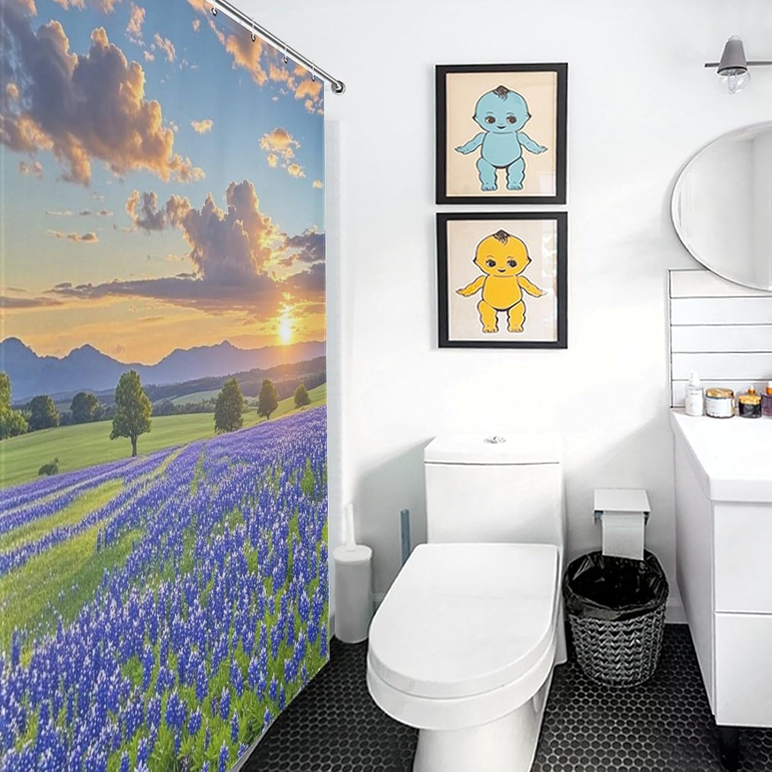 The shower curtains sets adopts premium polyester, easy to clean, machine-washable, waterproof, no peculiar smell, good wrinkle resistance, smooth.The shower curtain is thick enough to protect your privacy. The bathtub shower curtain allows you to enjoy the shower without outside distractions, make you relax body and soul.The shower curtain with excellent waterproof performance, it is beneficial to the separation of wet and dry. It also means the curtain is quick-drying, so you barely spend much time on caring.We use HD printing technology, the pattern is clear, printed with a unique pattern, this shower curtain gives an eye-catching look in your bathroom. Whether it is at home, RV, apartment, or hotel, suitable for any bathing place.Our shower curtain with rust-resistant metal grommets on the top, with 12 plastic hooks, use the C-hooks to quickly hang the shower curtain on the pole. You can machine or hand wash to keep it clean.Our shower curtain creating a sense of calm and relaxation, making you enjoy the bath.