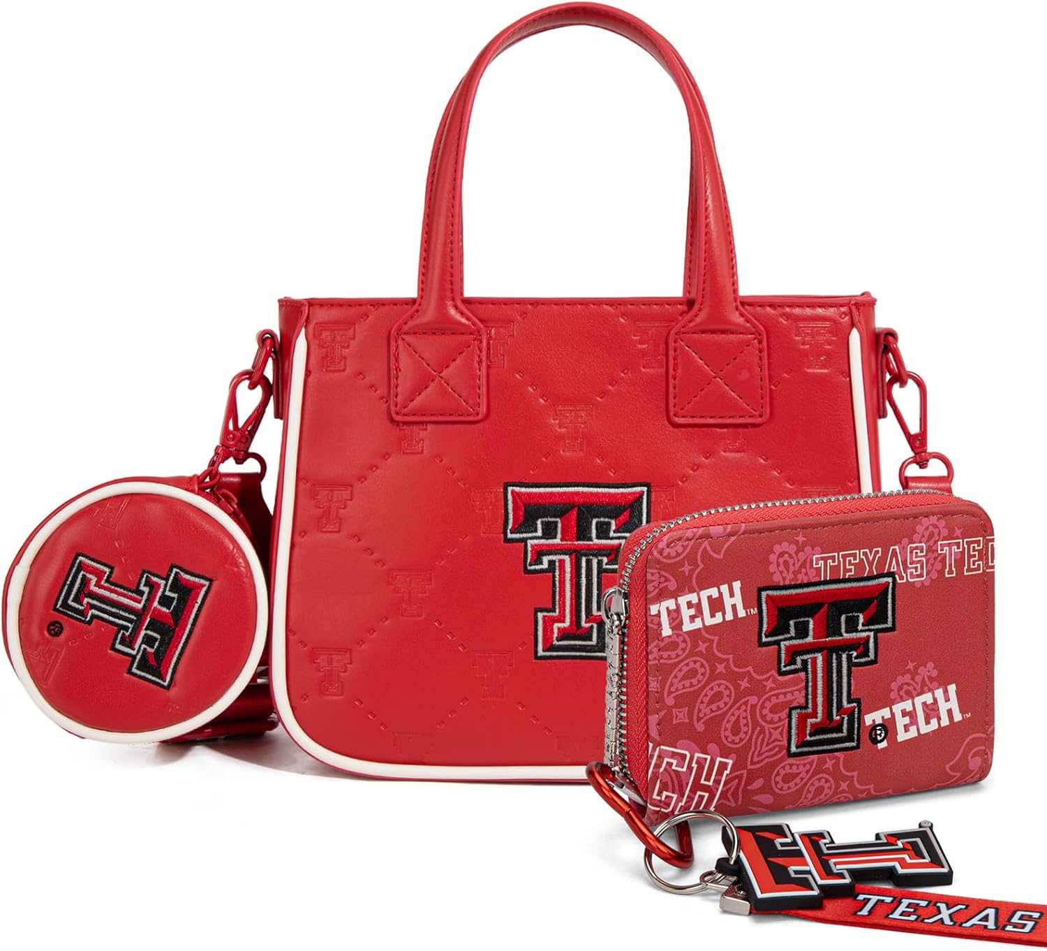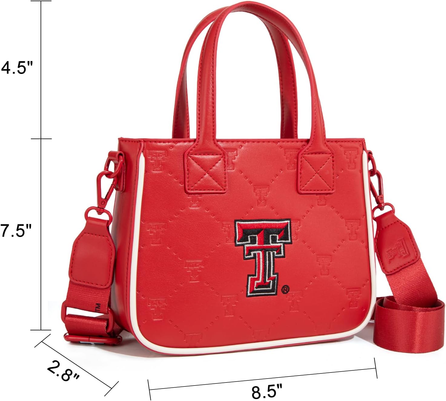 Show your Texas Tech pride with this premium mini tote bag! Crafted for NCAA fans, it features embossed team logos and a bold embroidered "Double T" emblem. Made from durable vegan leather with tear-resistant stitching, this bag is perfect for gameday, commuting, or casual outings. The removable coin purse adds convenience, while the adjustable crossbody strap and top handles offer versatile carrying options. Inside, multiple compartments keep your essentials organized. A must-have for Red Raiders supporters who value style, functionality, and team spirit.