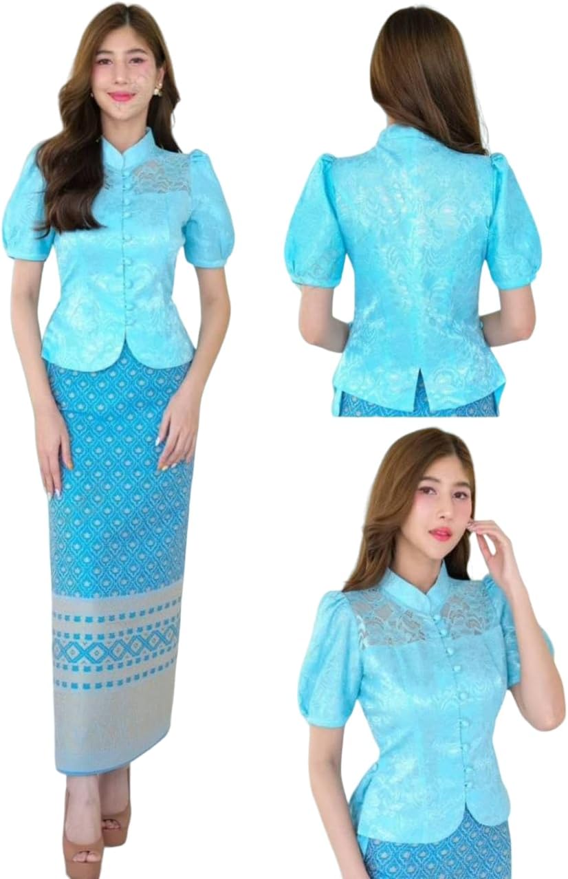 This beautiful Thai/Laos Silk Thai Blouse is made of high quality silk and is available in 10 different colors. It features a traditional Thai design with intricate lacework and is perfect for wearing as a traditional Thai dress or as a blouse for a more modern look. The blouse is made in Thailand and is designed to be comfortable and stylish, with a chest range of 32" to 46" to fit a variety of body sizes. The blouse is machine washable and easy to care for, making it a great addition to any wardrobe.