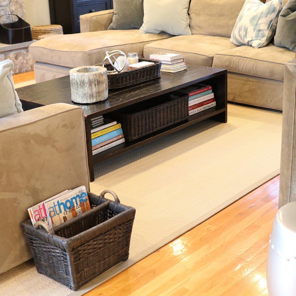 We have refreshed our divided magazine basket using the popular pattern of our Lift-Off Lid Storage Basket. This basket has side handles for easy carrying. Multiply weave patterns Rattan woven over a pole frame for rigidity Divided into two sections Finished in Antique Walnut Brown ONE SIZE 15.5"L x 12"W x 12.5"H