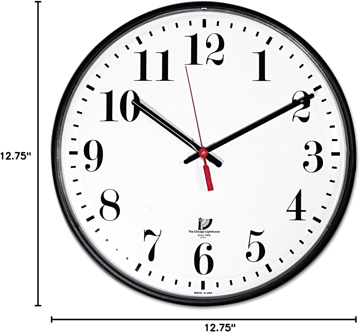 Our 12.75" Slimline Series offers a classic design perfect for office settings, schools, work spaces and home environments. Top quality quartz movement ensures long-term precision timekeeping. Non-yellowing 12” white dial face features bold, easy-to-read Arabic numerals, black hour and minute hands, and red second hand. Clock bodies are durable and biodegradable, made with 30% post-consumer recycled content. Lenses are shatter resistant and UV protected. Each clock is subject to our two-step testing procedure before being packaged. All Chicago Lighthouse clocks are assembled in Chicago, Illinois by people who are legally blind. One standard AA alkaline battery required (not included). Hanging hardware included.