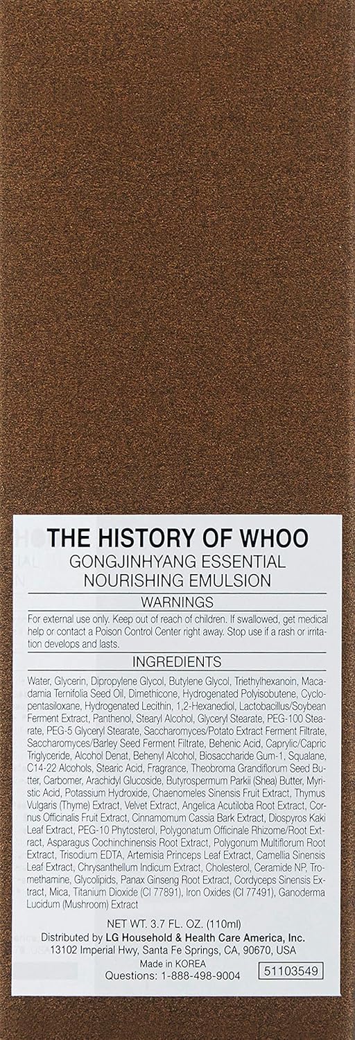 Product Description This nutrient-rich lotion sooths skin while visibly reducing fine lines and wrinkles. It is formulated with Wild Ginseng which enhances skin's defenses against damage and to keep skin clean and healthy. Brand Story The History of Whoo collection is the modern reinterpretation of traditional beauty secrets from the Korean royal courts. The brand combines the benefits of Eastern herbal medicine with modern science.