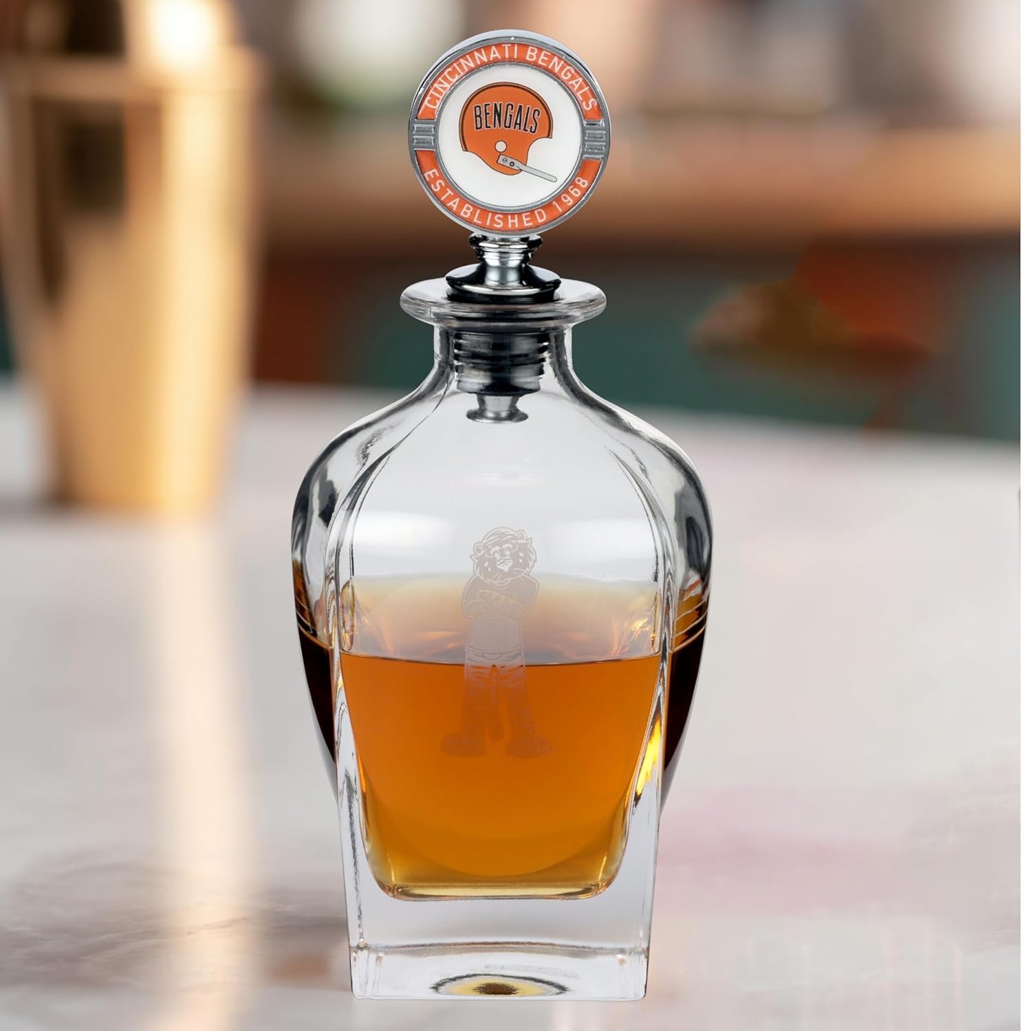 Elevate your home bar experience with The Memory Company's officially licensed NFL Team Spirit Decanter Set. This premium glass decanter combines sophisticated style with team pride, featuring your favorite NFL team's mascot as an expertly crafted stopper that creates an airtight seal to preserve your spirits' character and complexity. Crafted from high-quality glass, this 750ml decanter offers crystal-clear clarity that beautifully displays your favorite whiskey, bourbon, scotch, or other premium liquors. The weighted base ensures stability, while the wide mouth allows for easy filling and smooth pouring. Each mascot stopper is meticulously detailed, creating a distinctive conversation piece that showcases your team loyalty. Key Features: • Official NFL licensed collectible • Premium glass construction • 750ml capacity - perfect for a standard bottle • Detailed team mascot stopper • Airtight seal for freshness • Weighted base for stability • Wide mouth for easy pouring • Crystal-clear clarity Whether displayed in your home bar, man cave, or office, this decanter set makes a striking addition to any NFL fan's collection. It's also an ideal gift choice for birthdays, holidays, housewarmings, or any special occasion celebrating the sports enthusiast in your life. Transform your spirits service into a memorable experience that combines functionality with team spirit. Add this distinctive piece to your collection today and celebrate your passion for the game in sophisticated style.
