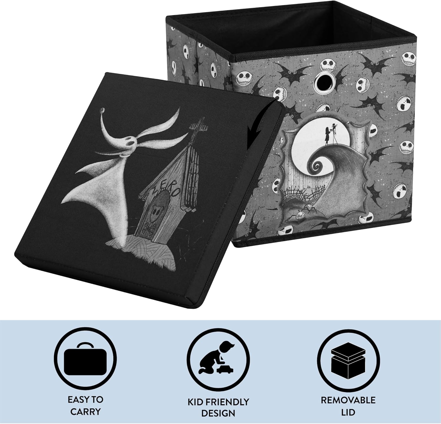 The Nightmare Before Christmas collapsible storage cube with lid is a multi functional piece that can be used in any room of the house. With metal grommets, this storage cube can be used to store kids toys, books, games and more. Cube is 10"x10"x10" and fits in most storage units. Printed with kid favorite Winnie the Pooh graphics.
