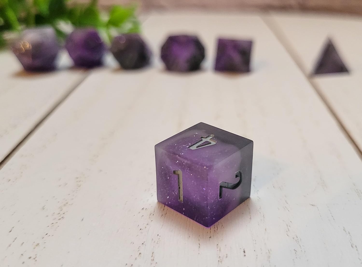 I love Amethyst. Purple has been my favorite color ever since I learned what colors were. So naturally, I had to try to make a mock amethyst dice set. I love them, they are beautiful. The set pictured I am keeping for myself. I just love this set so much. These dice are made from resin and Alcohol inks. I do mix some crushed crystals in also. The numbers are painted with a satin Gray. Each full Dice set comes with one D4, D6, D8, D10, D%, D12, and D20 I do hand make these dice, so as with anything handmade, it will have its unique imperfections. But I always strive for perfection. These are Handmade dice sets. I do not keep them in stock. I make these dice as they are ordered. With current demand i do need about 8 days from start to finish. I make these out of resin. They will need 24 to 48 hours to cure. Then I sand each dice by hand in order to get the perfect shapes. Then they are placed in a vibration tumbler for 24 hours. Then I hand paint the number, and give the dice a very good cleaning. For true handmade dice, its a very demanding process. But I love and enjoy making them. If you read this far thank you! Your amazing for supporting small business's. -Crystal