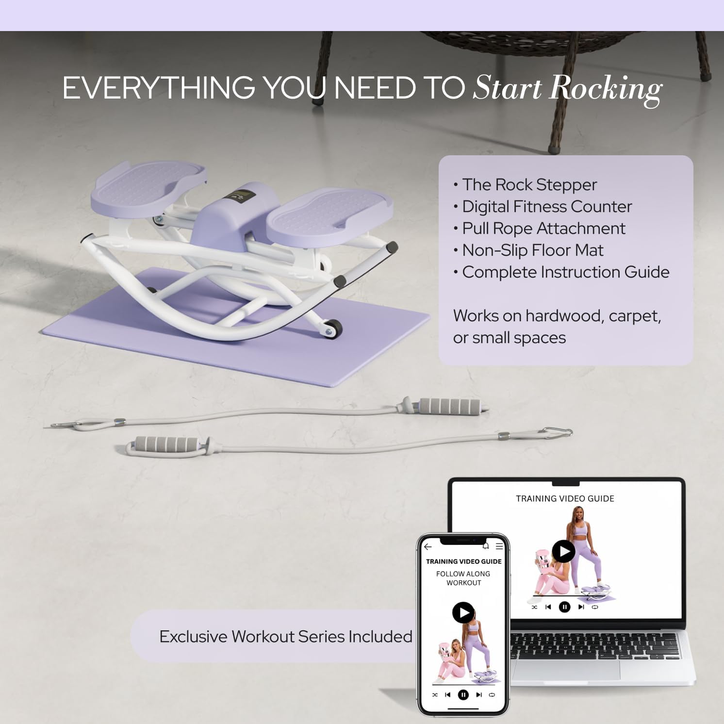 | Included Components | Digital fitness counter, Non-slip floor mat for stability, Pull rope attachment for upper body workouts, Rock Stepper |