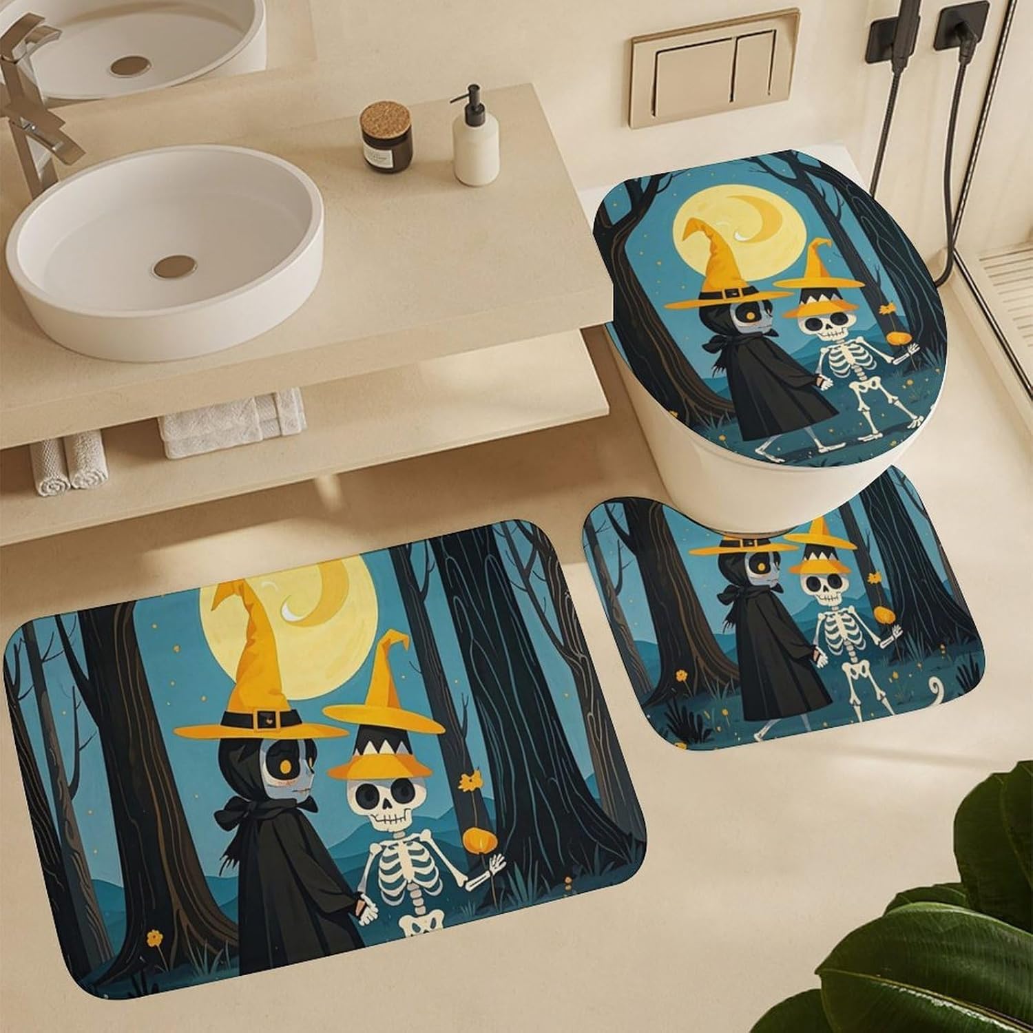 Welcome to a Cozier, More Organized BathroomComplete Bath Mat Set Cute Shower Curtain Set Bath Accessories Set Bathroom Set with Shower Curtain Bathroom Decor Soft Bath Mat Bathroom Decor Set Bathroom Rug Bathroom Floor Mat Housewarming Gift Bathroom Vanity Mat Luxury Bathroom Mats Set for Tub Side Bath Mats for Bathroom SetLuxurious Comfort UnderfootOur thick, velvety coral fleece bath mats are exceptionally soft and gentle on your skin. They are highly absorbent, quickly wicking moisture away from your feet after a shower or bath, leaving your bathroom floor dry and preventing slips.Functional Protection & PrivacyThe included waterproof Oxford fabric shower curtain is a reliable barrier against water spray, protecting your bathroom from moisture. It ensures privacy while its sleek look complements most decors. The matching toilet lid cover adds a finished, hygienic touch to your toilet.Thoughtful Details for Your ConvenienceThe modern shower curtain set feature a secure non-slip backing to keep them firmly in place. The set comes ready to use with 12 durable C-shaped plastic hooks for the curtain. Achieving a put-together bathroom has never been easier.Easy Care for Lasting BeautyMaintaining a fresh, clean bathroom is simple. The mats fluff up nicely after washing. We recommend gentle hand washing to best preserve the fabric's softness and color vibrancy. The shower curtain can be wiped clean with a damp cloth.Create Your SanctuaryIdeal for master bathrooms, guest suites, apartments, dormitories, or rental properties. This set is the perfect gift for housewarmings, new homeowners, or anyone looking to upgrade their bath space with minimal effort and maximum style.
