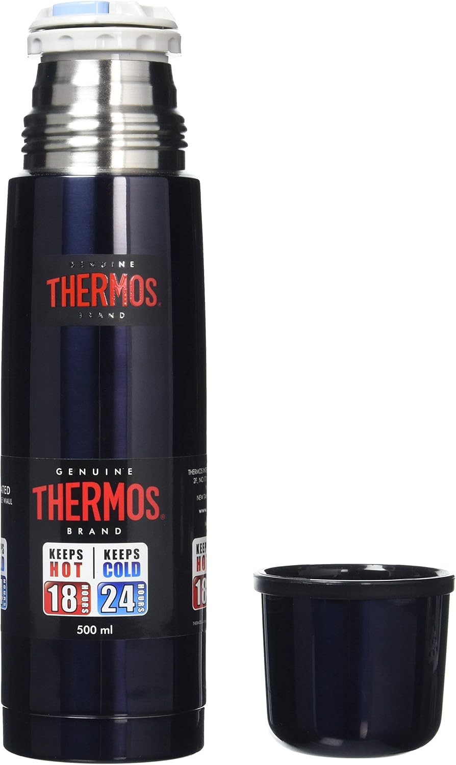 Product Description Thermos developed the Light & Compact collection for people wanting full capacity and durable flask yet light weight and portable. This flask does all 3. Set Contains: 1 x Thermos Light and Compact Stainless Steel Flask - 500 ml, Midnight Blue