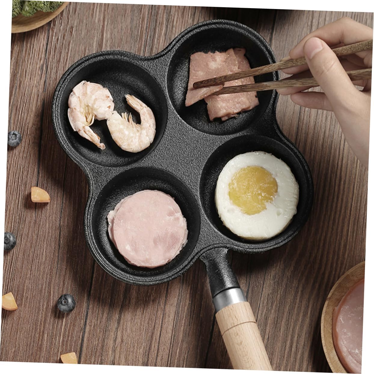 Package List 1 x Frying Pan Features -Size: Approx. 36 x 18.8 x 2.3 cm / 14.15 x 7.39 x 0.90 inch omelet making pan -Color: Black egg fry pan -Material: Iron & Wood egg frying pan - Anti- handle, safe and practical for using small egg frying pan. - Cooking is quicker and easier, requiring only a few simple steps. omelette pans - 4-hole compartments for easy use, practical for kitchen use egg omelette pan. - Light weight and compact size, easy to carry and store frying pans. - You can to frying 4 eggs or burger and the like at the same time omelette pan nonstick.Goods Informationomelette pans With it, your breakfast will be easier and quicker.small egg frying pan This item is household frying pan, featuring 4 holes design, which delicious dishes such as fried eggs, fried steak, pancake, Bacon and so on.non-stick frying pan It is simple , but very practical in use, which brings great convenience to you